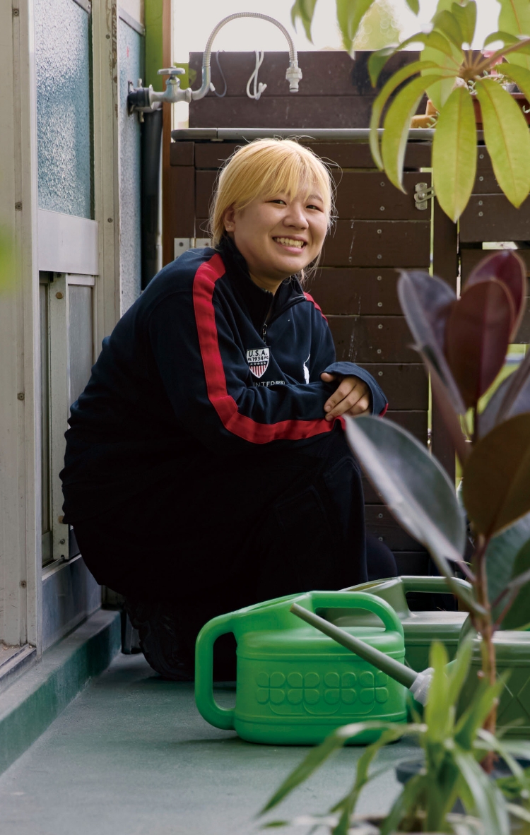 緑豊かな土地で育ったことから、植物と関わる仕事に就きたいと思いガーデンデザイン学科に進学しました。この学科は実習が多く、体を動かしながら知識・技術を養えるところが魅力的です。また実習を通じて、造園の世界で活躍するさまざまなプロの方々から直接教わることができるのもステキで、毎回の実習がとても楽しみです。