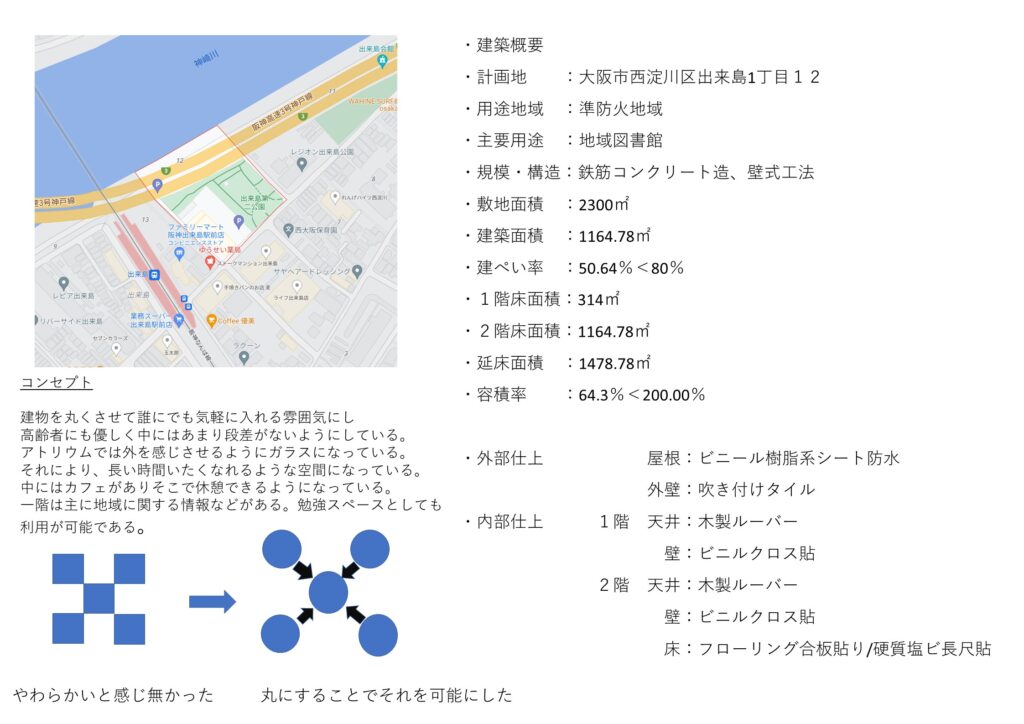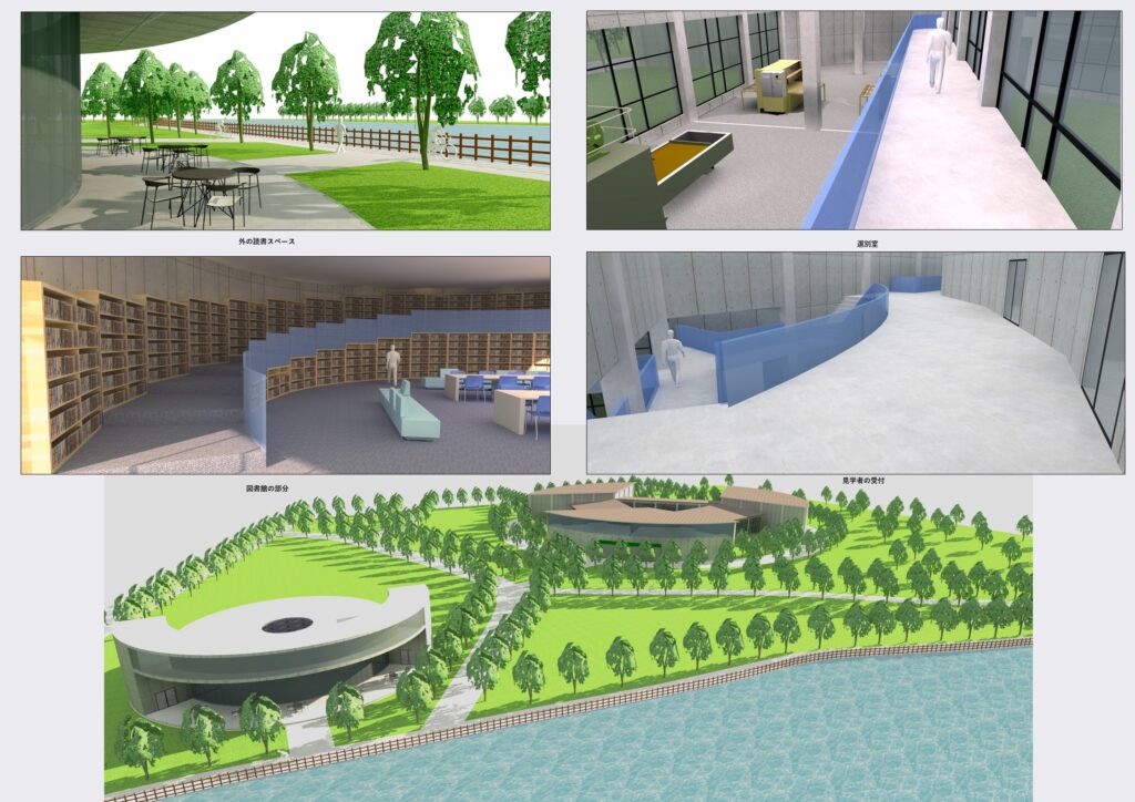 コンセプトは、地域社会に密着した図書館です。地域社会に密着出来るような空間を取り入れ様々な人に利用してもらえるように工夫をしました。