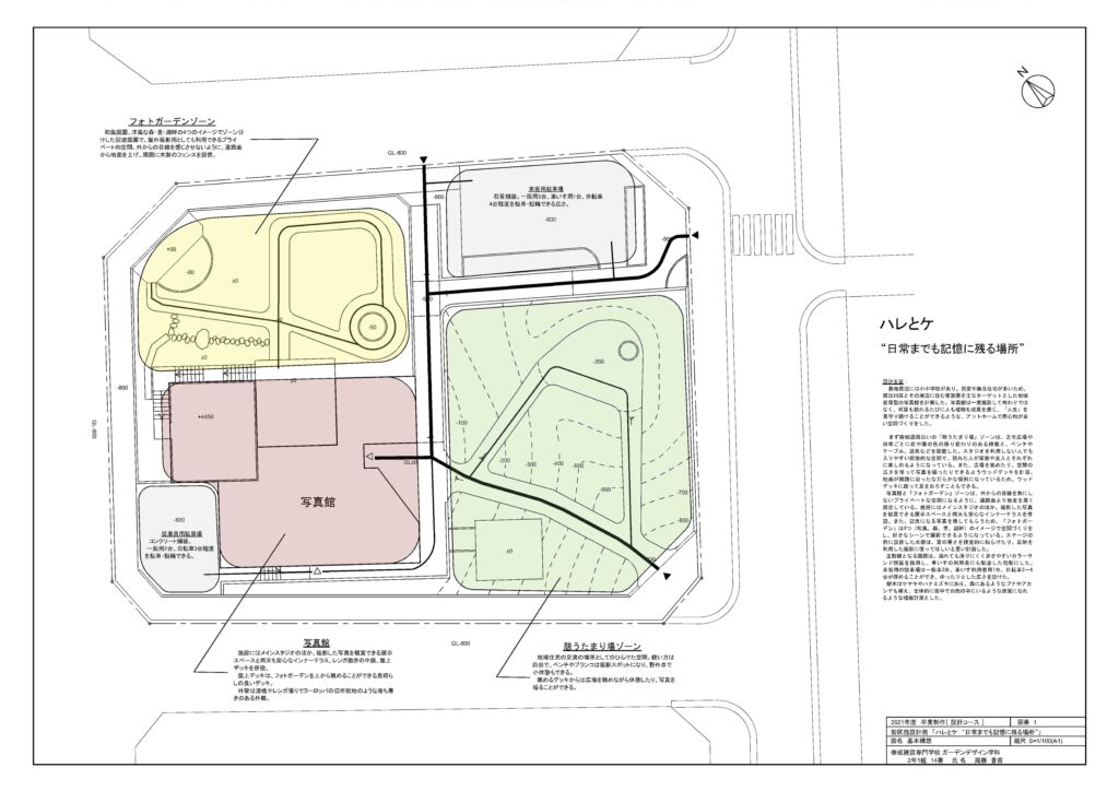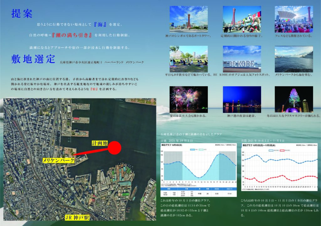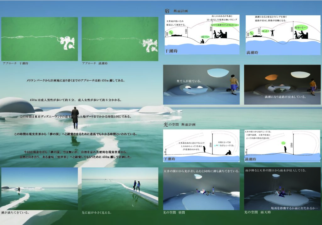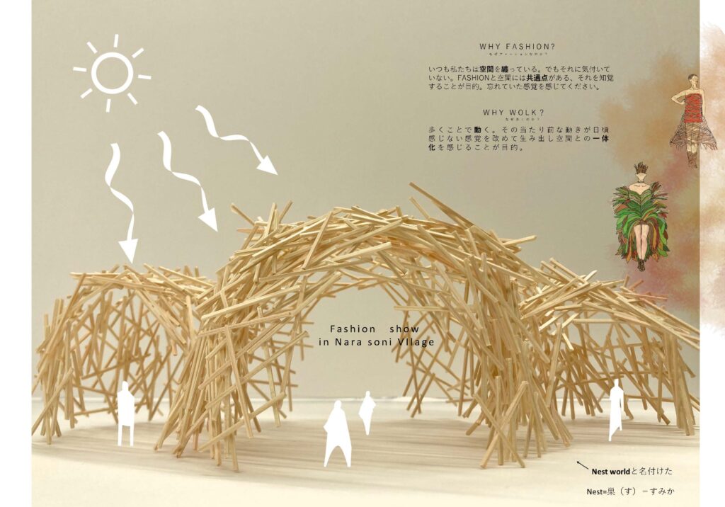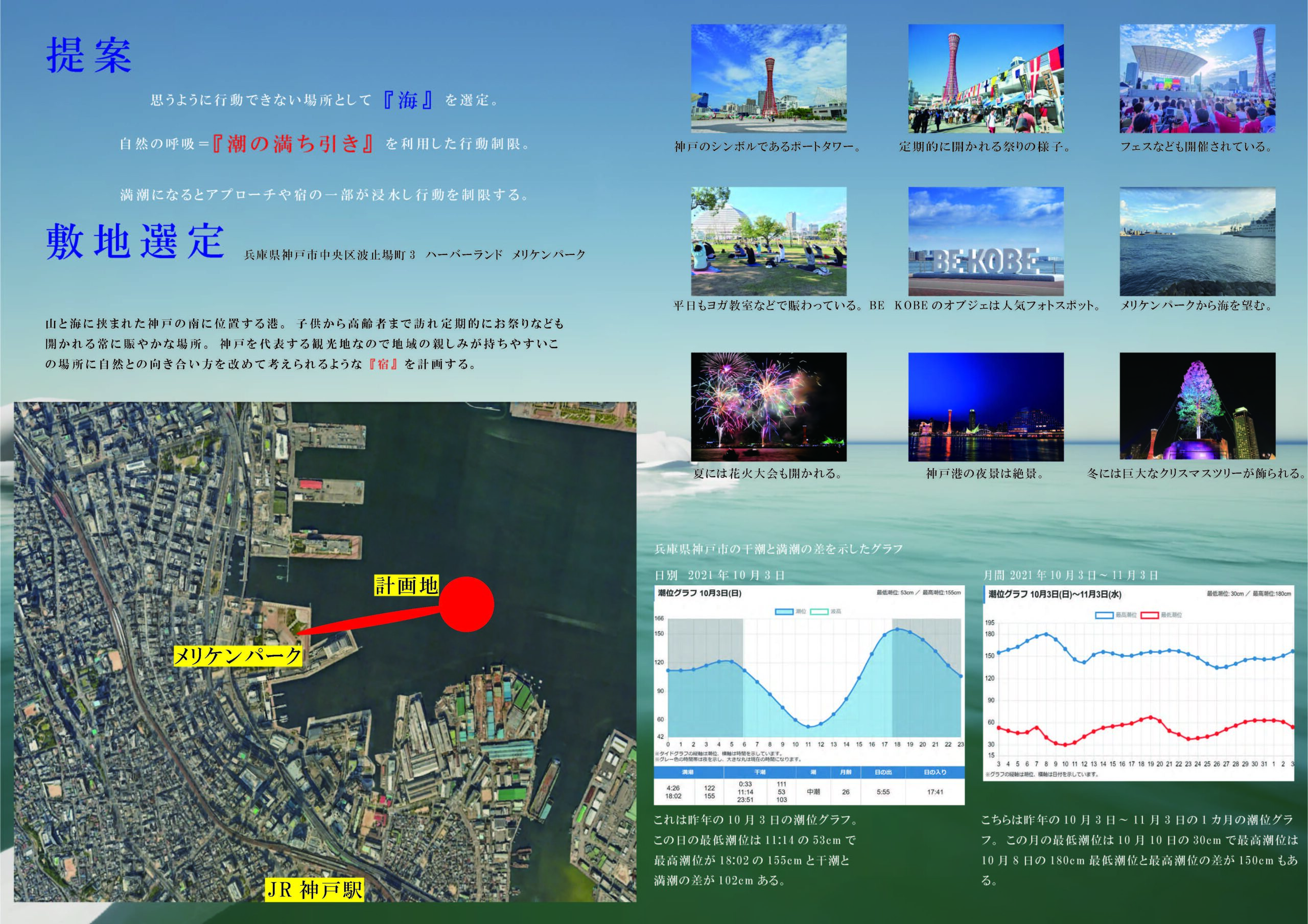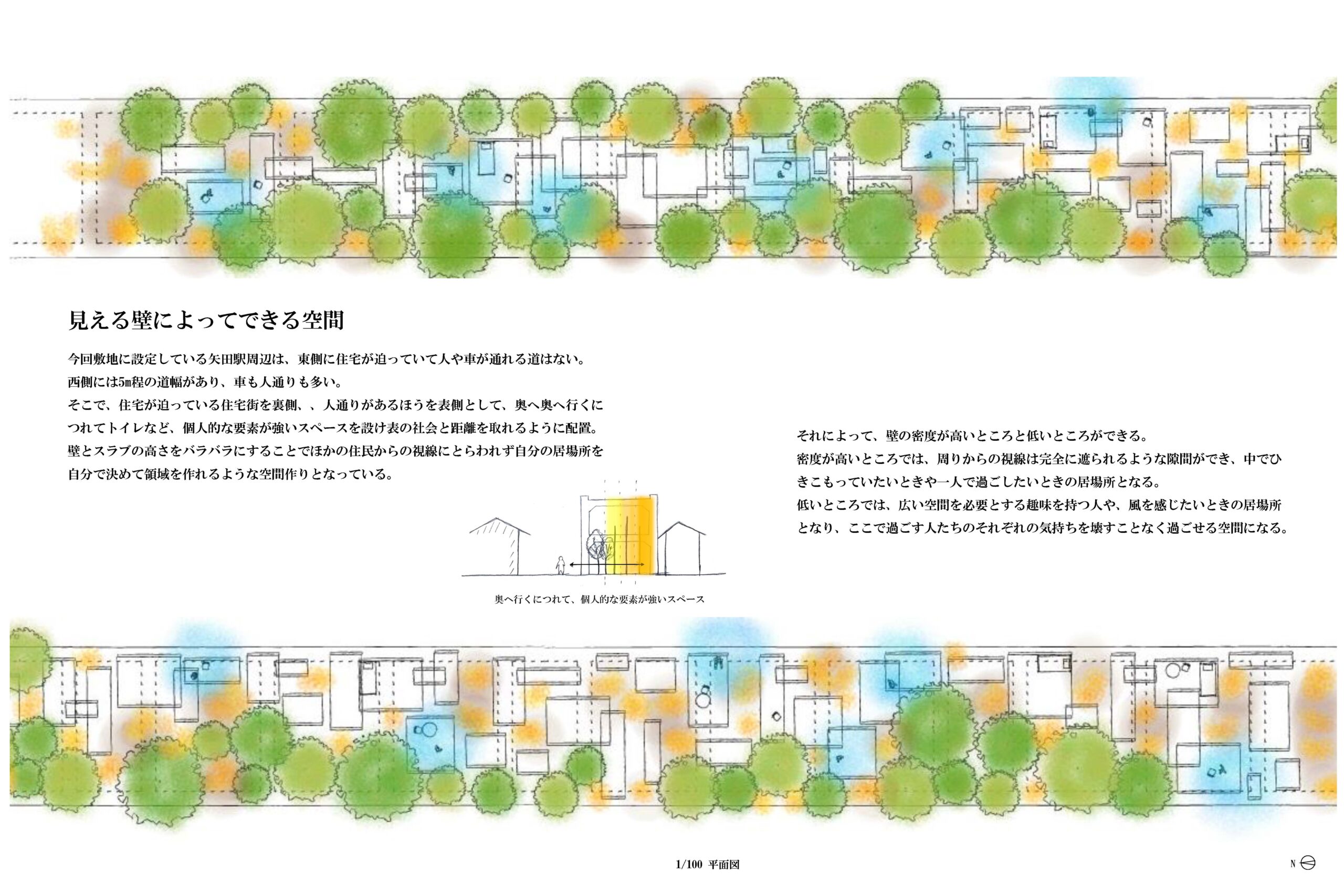 アフターコロナの建築デザインは「箱からの脱失」で、ランドスケープデザインが重要視される。基本設計コースには珍しく、模型製作まで挑戦した表現提起は秀逸である。<青砥 聖逸>
