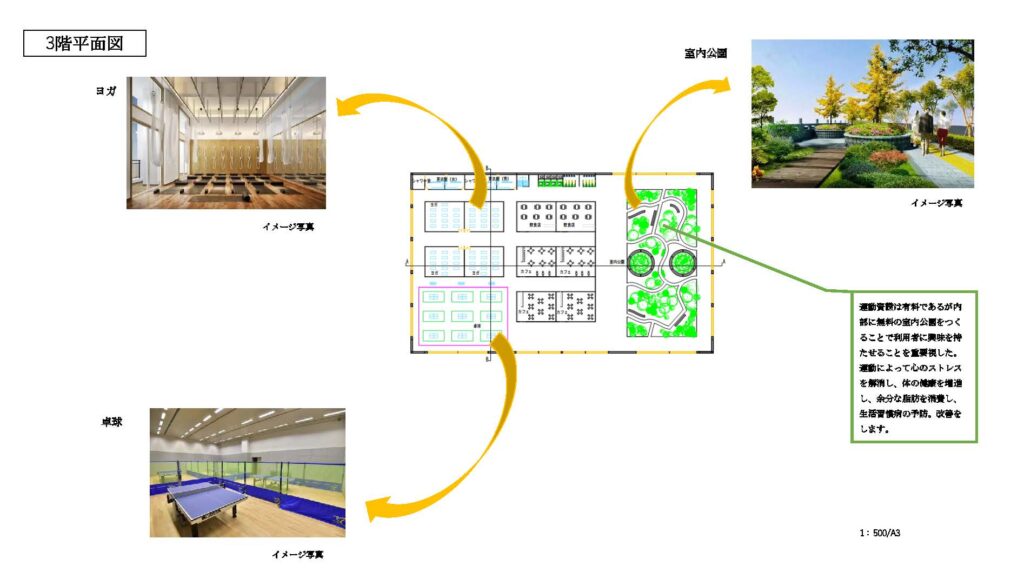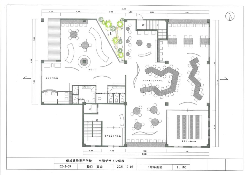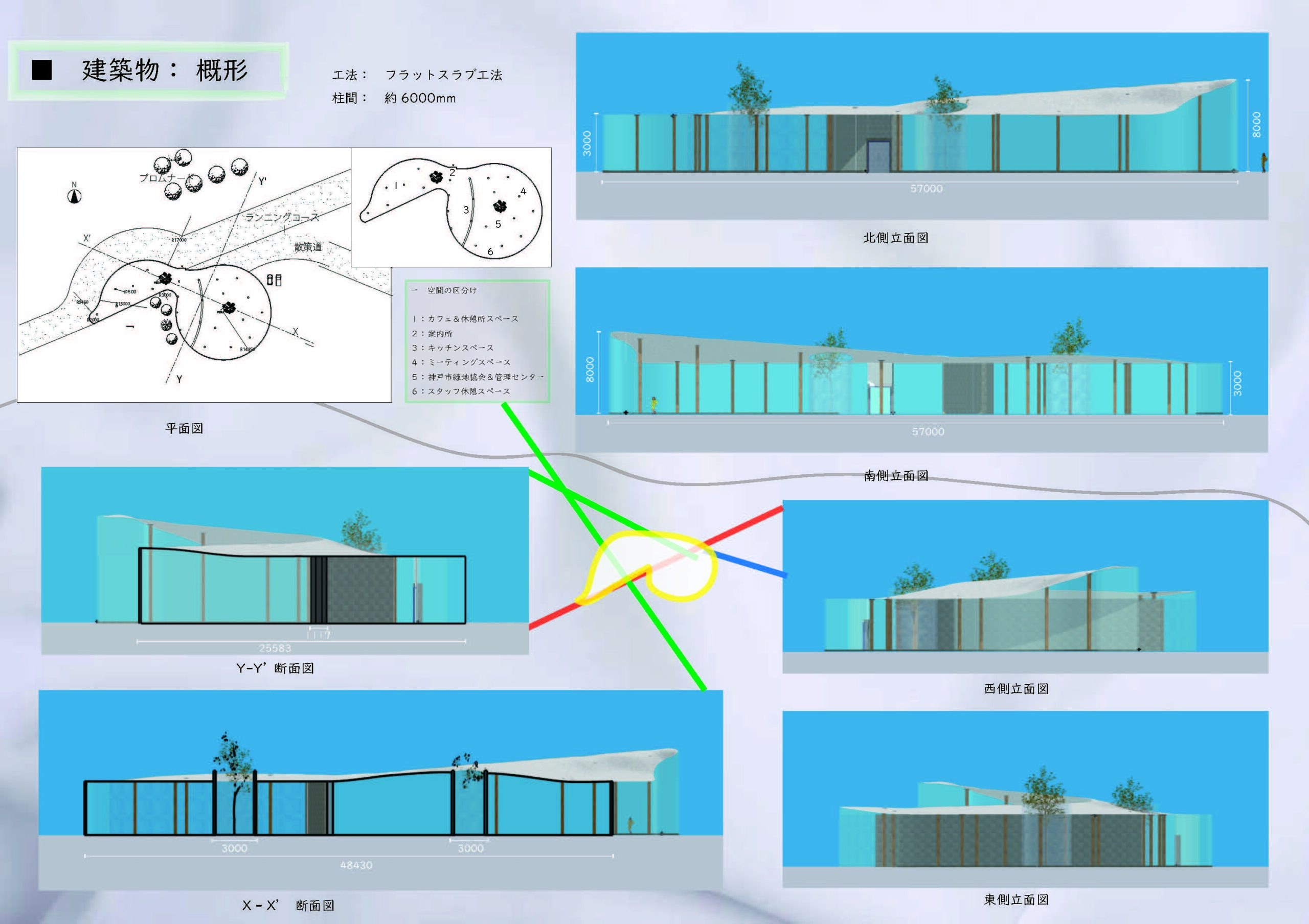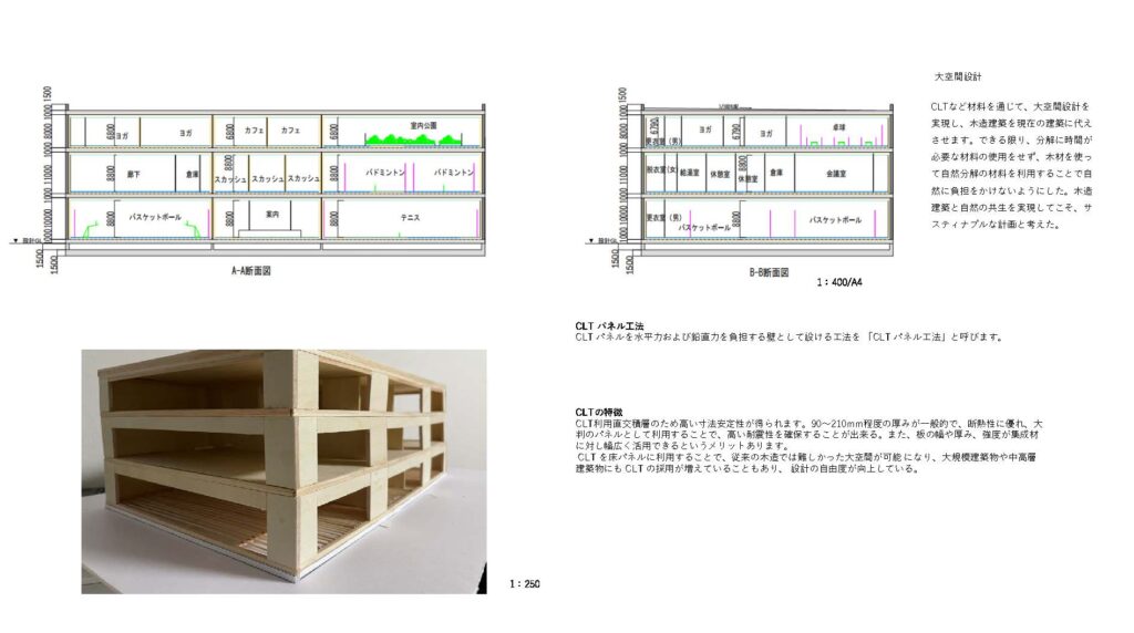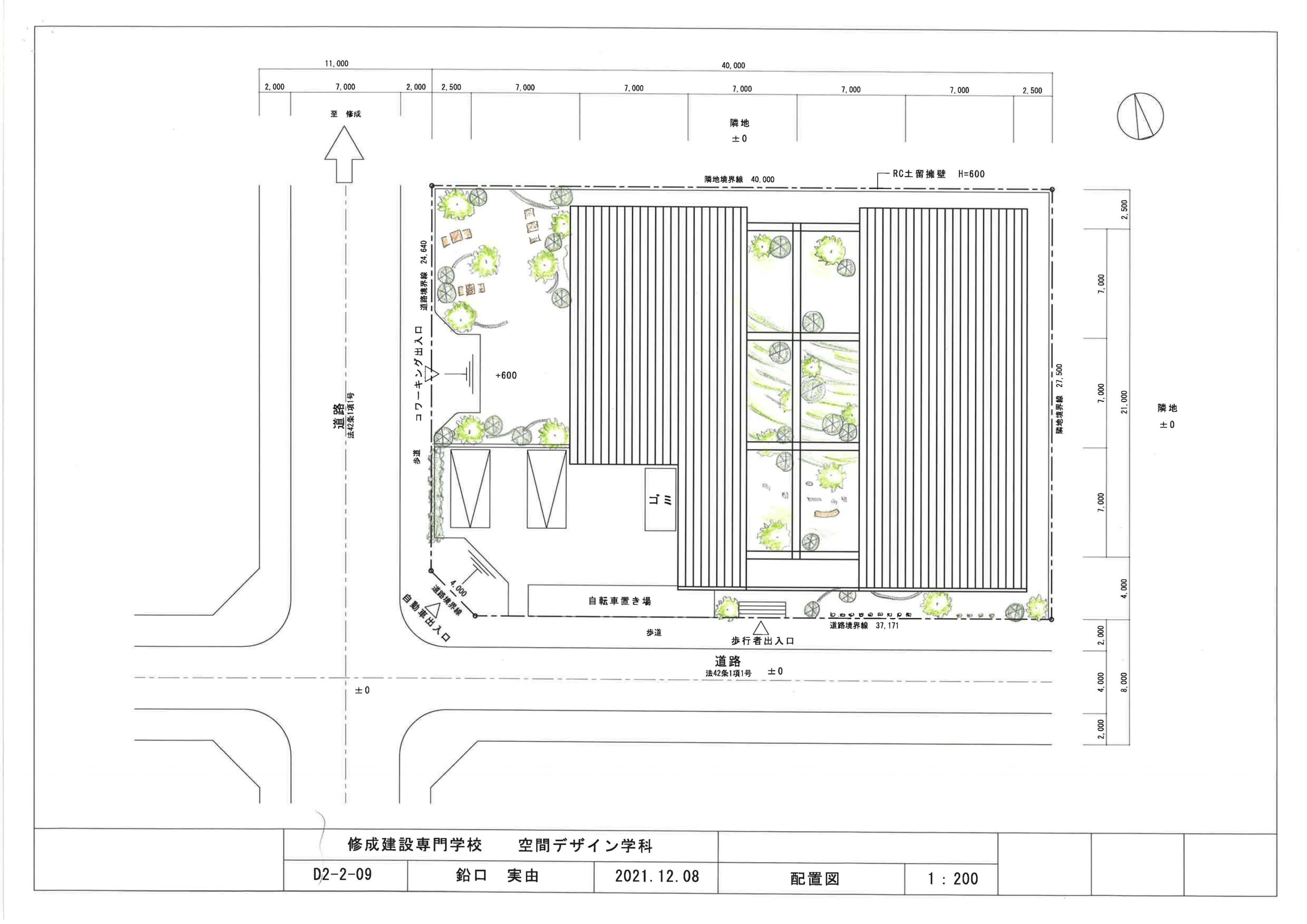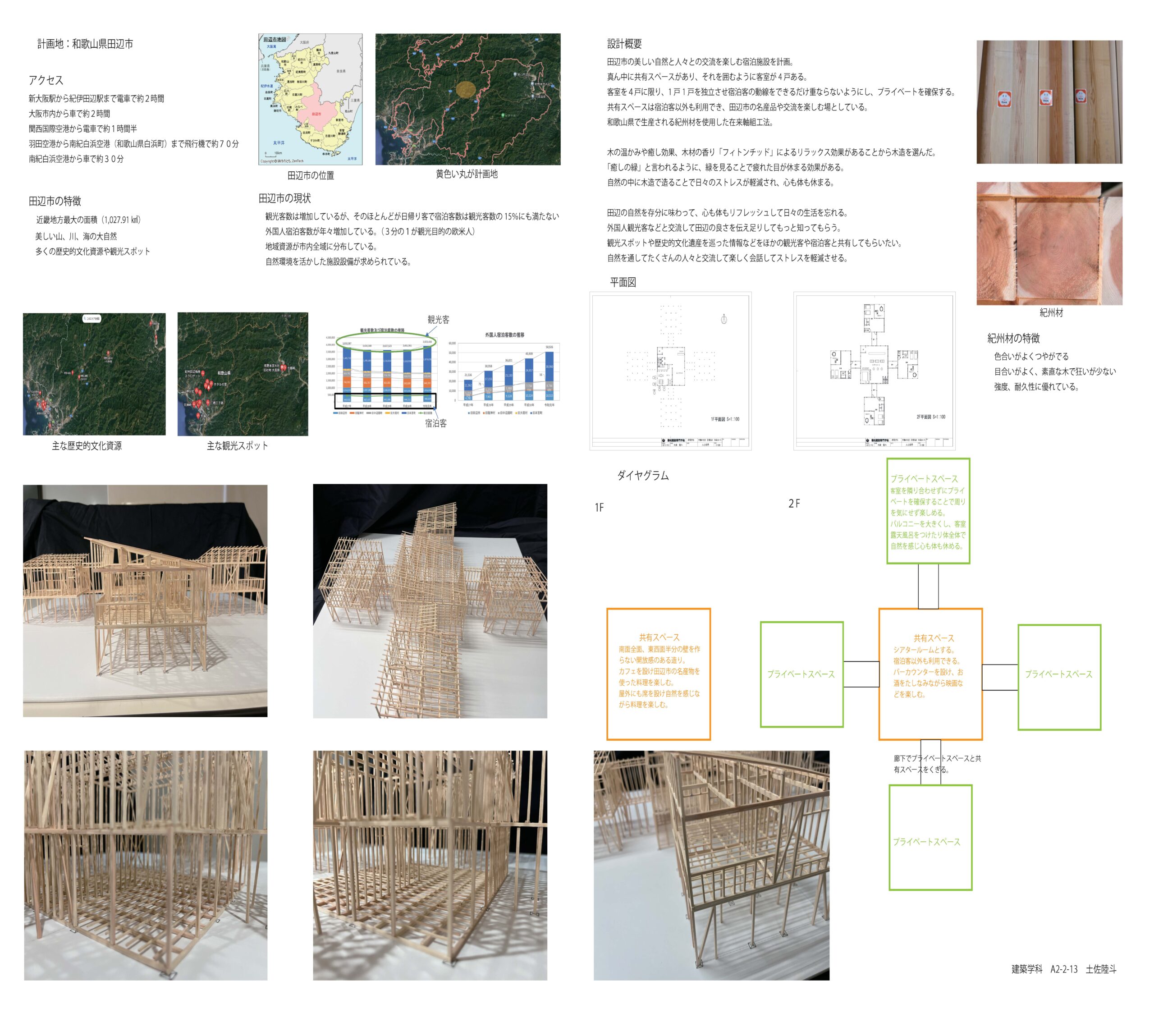 アフターコロナの建築デザインは「箱からの脱失」で、ランドスケープデザインが重要視される。基本設計コースには珍しく、模型製作まで挑戦した表現提起は秀逸である。<青砥 聖逸>