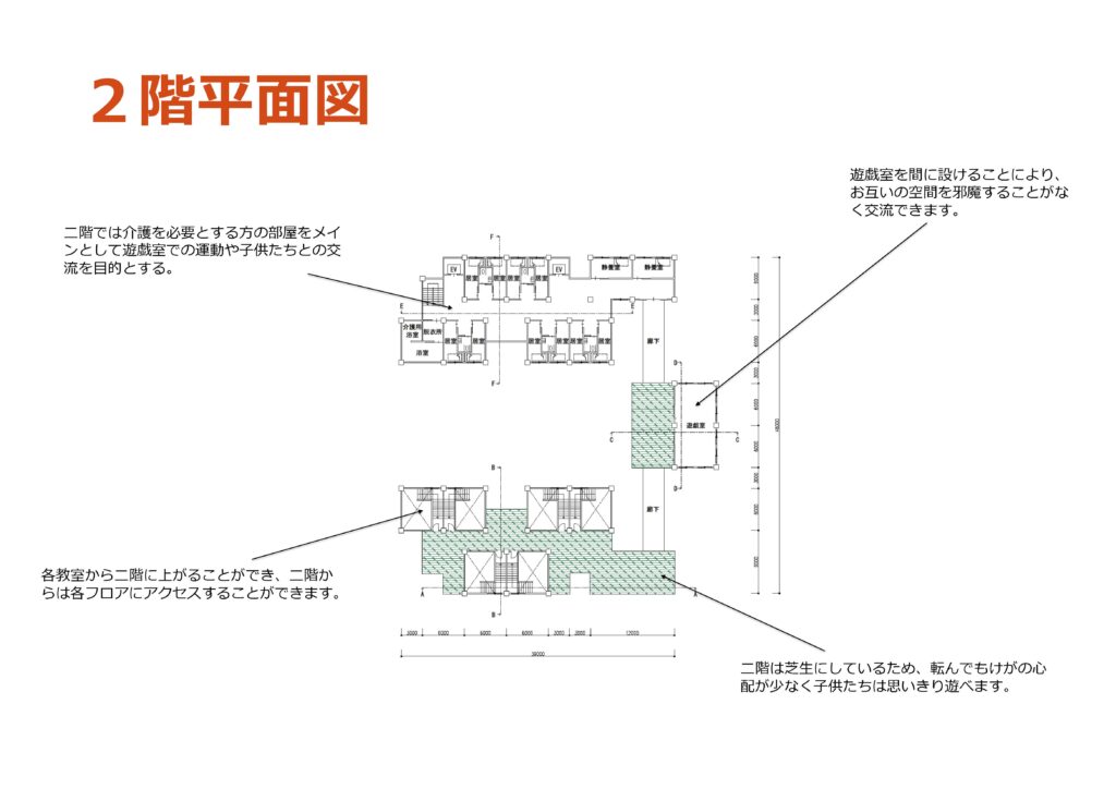 老人ホームなどの施設に入りたくないと考える人に、自ら進んで行きたくなるような施設となることをを目指しました。まだ元気で若い頃から施設を利用して孫世代の子供たちと交流する。子供たちは地域の大人たちとの関わりを持つことで社会性を身につけてゆく。