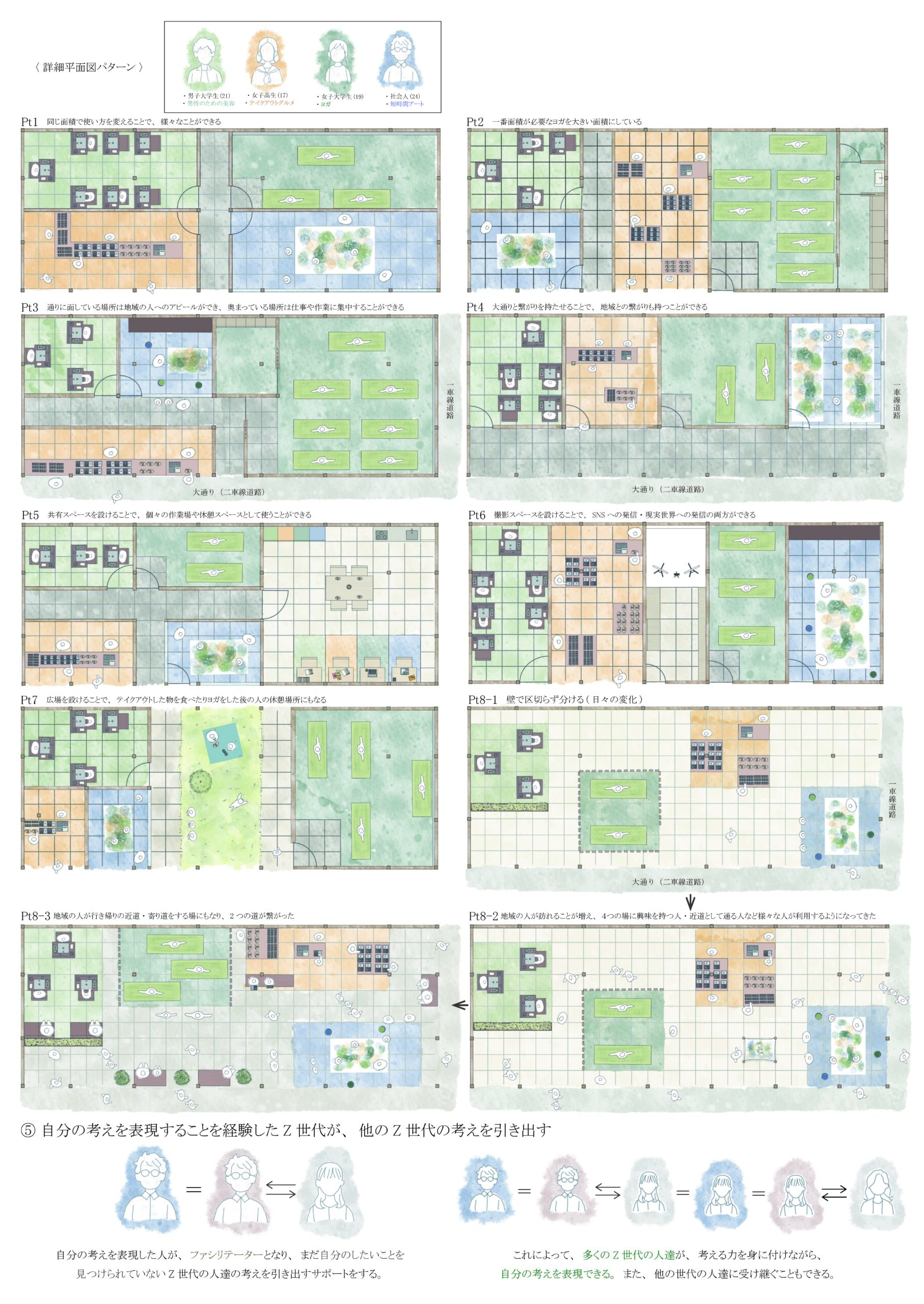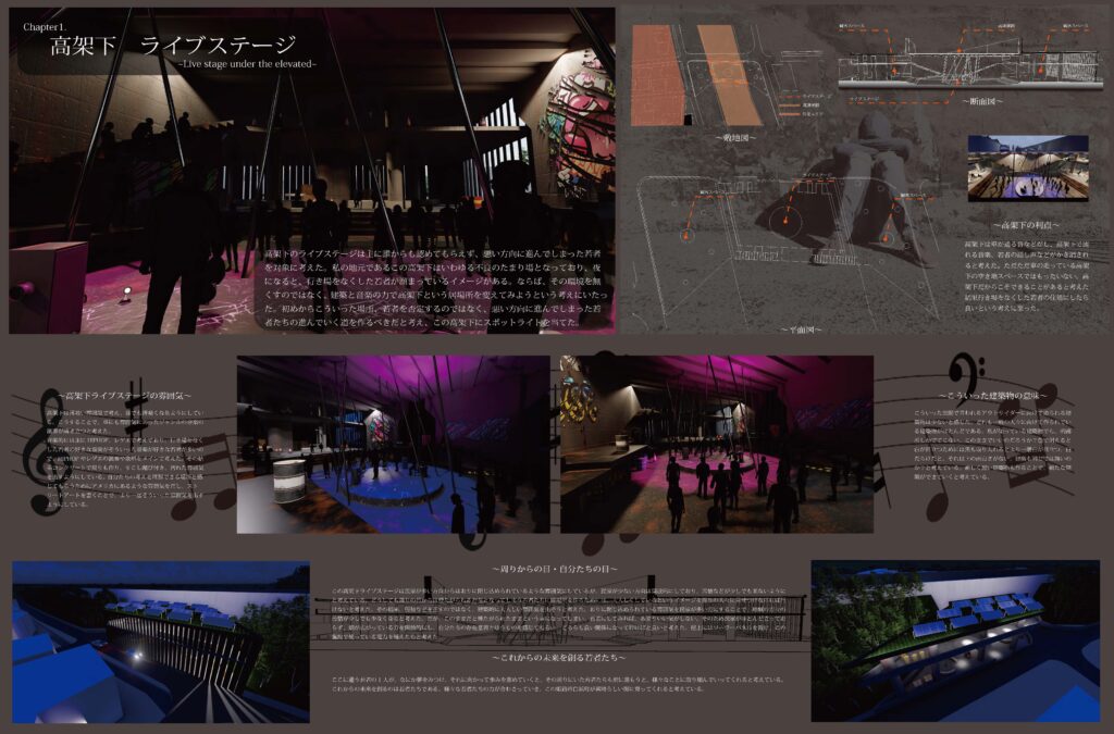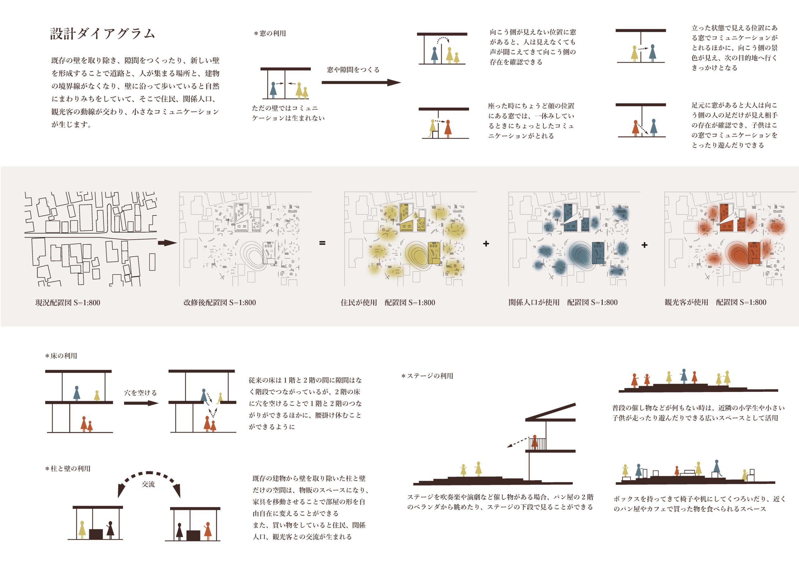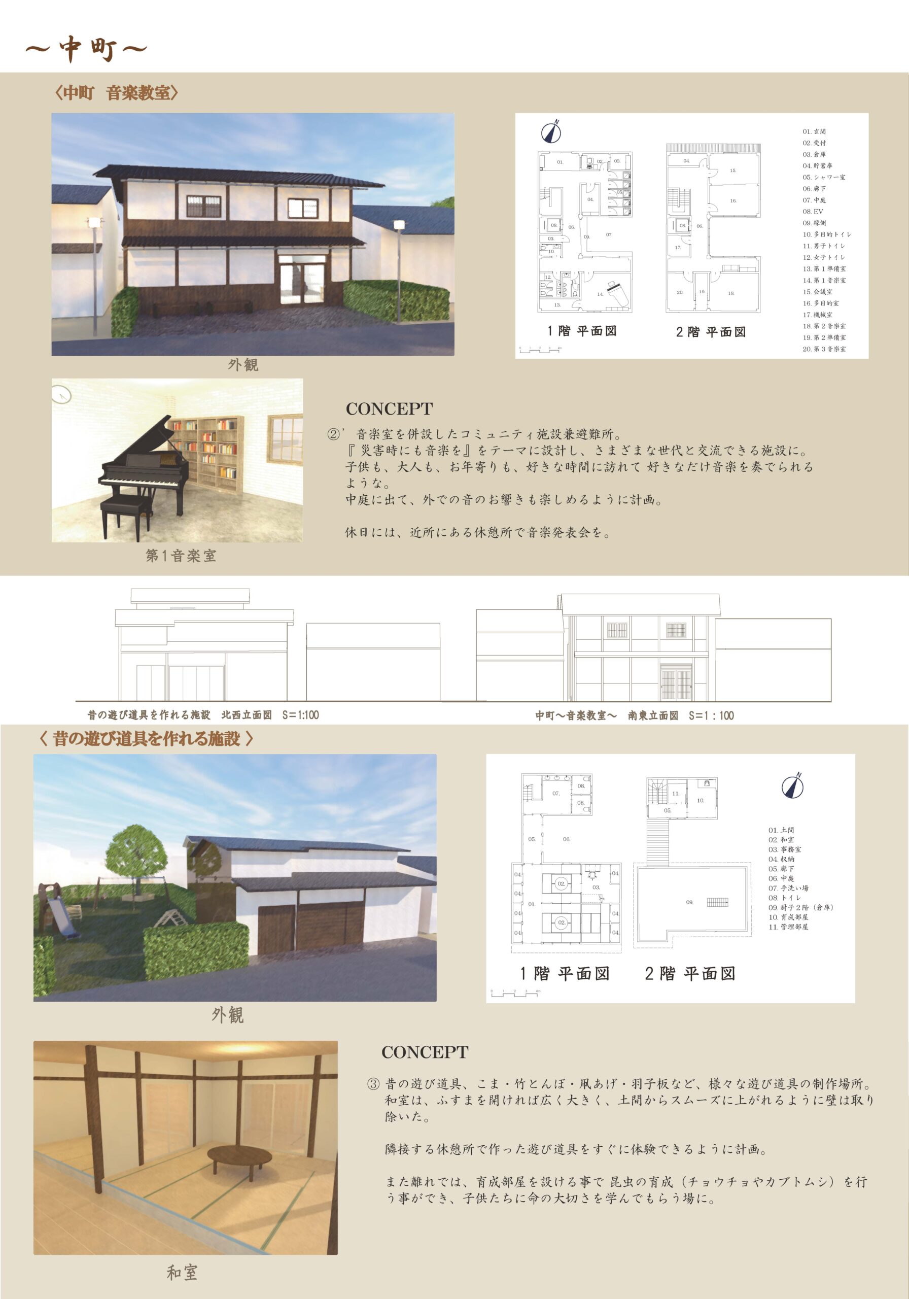これからの時代にどのような方法が活性化につながるか様々な角度から検討してくれました。試行錯誤の中うまく進まないこともありましたが、最後まで減速せずにやりきってくれました。この卒業設計の試行錯誤がこれからの設計につながっていくと思います <吉田 秀栄>