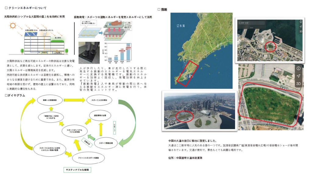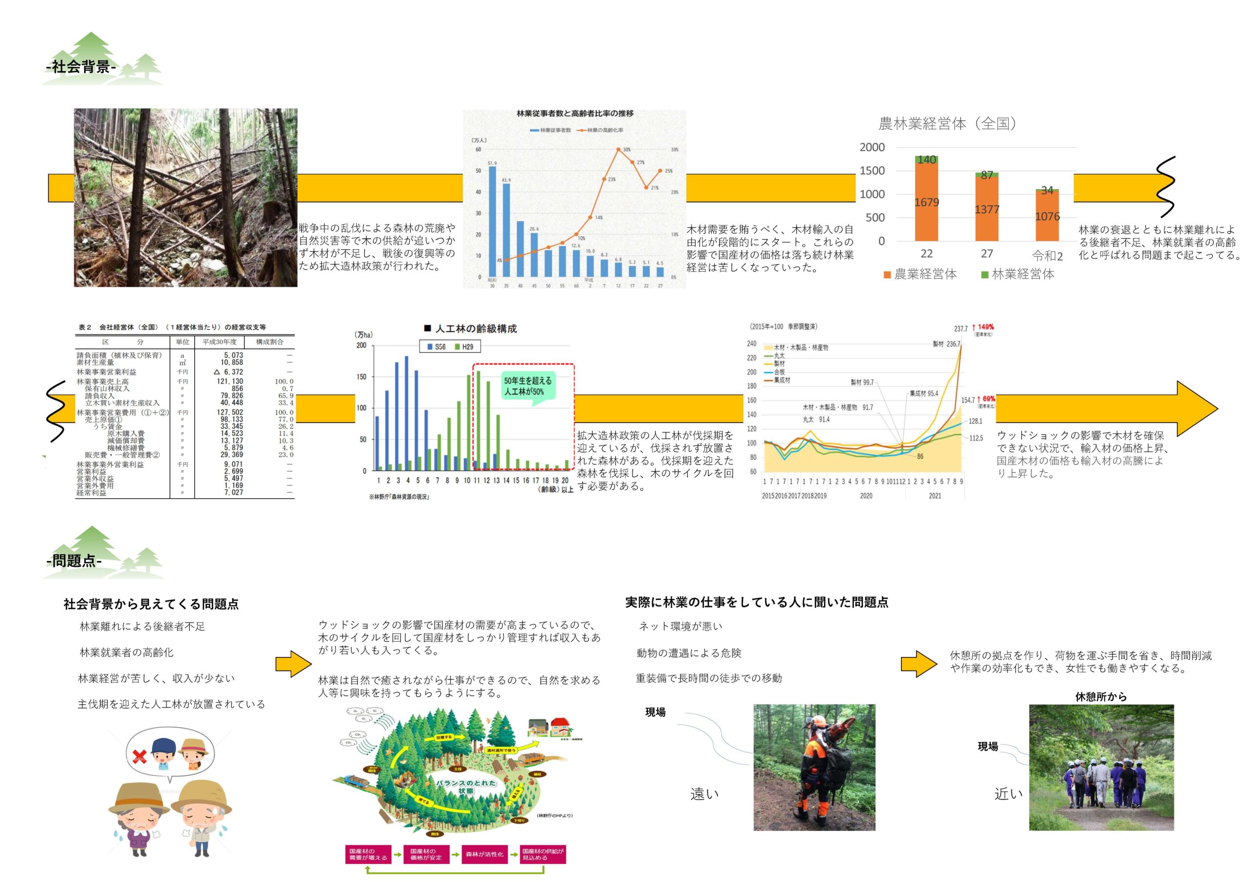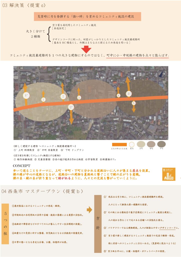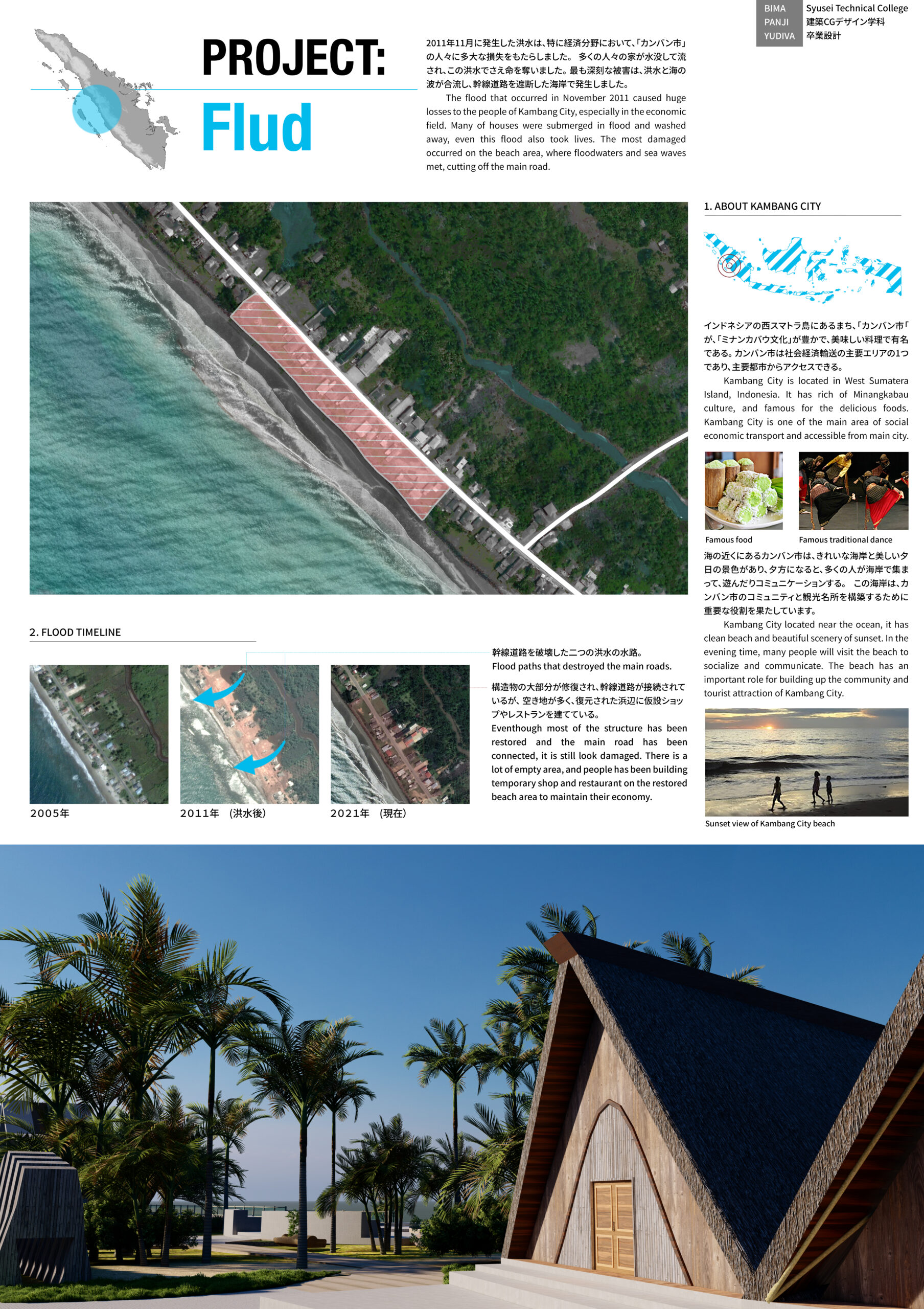 カンボジアと日本の実情を知る留学生ならではの視点で、両国の文化の違い、習慣の違い、意識の違いを感じ取り、解法を提示すると共に、急速に高密度化している都市を緩和させる緑地と共存させるなど、現存する問題の解決に向けて意欲的に取り組む姿勢が見られます。 <福山 亮介>