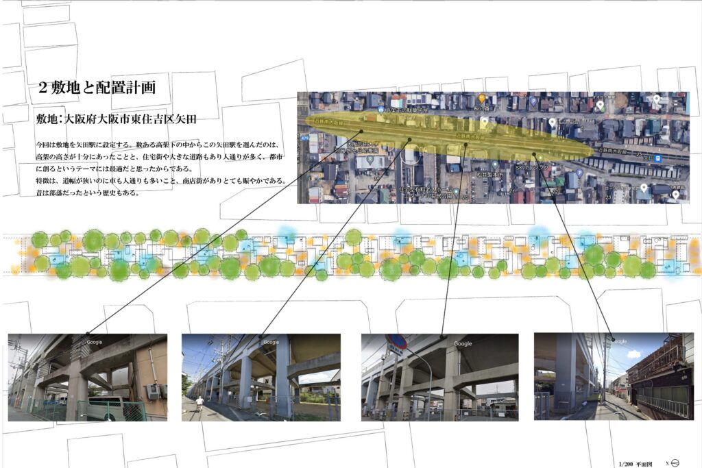 高架下のどこまでも繋がっている空間を利用して、自分自身と長く付き合って生きられる世界になれたらいいなと考えました。
