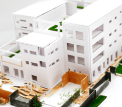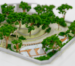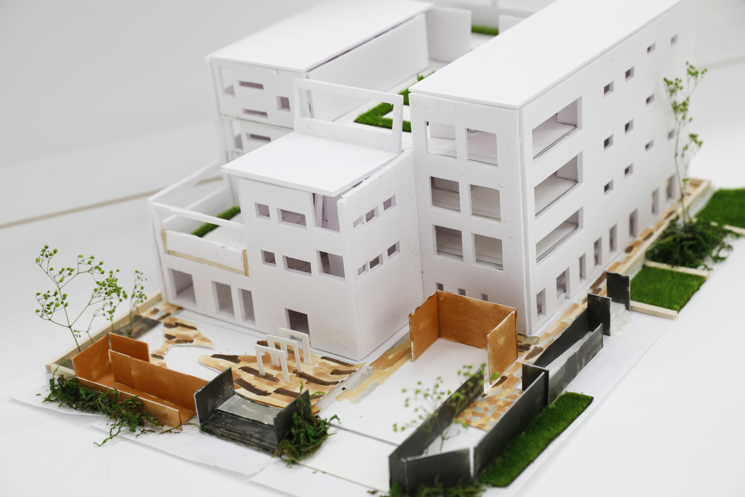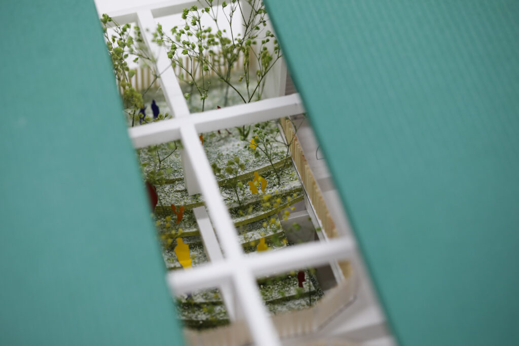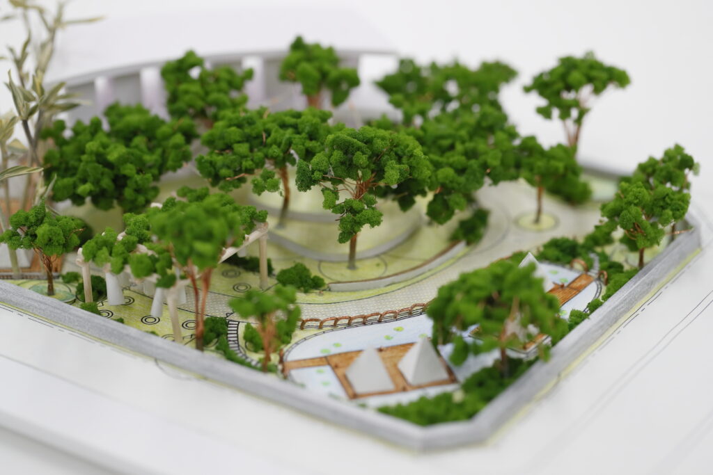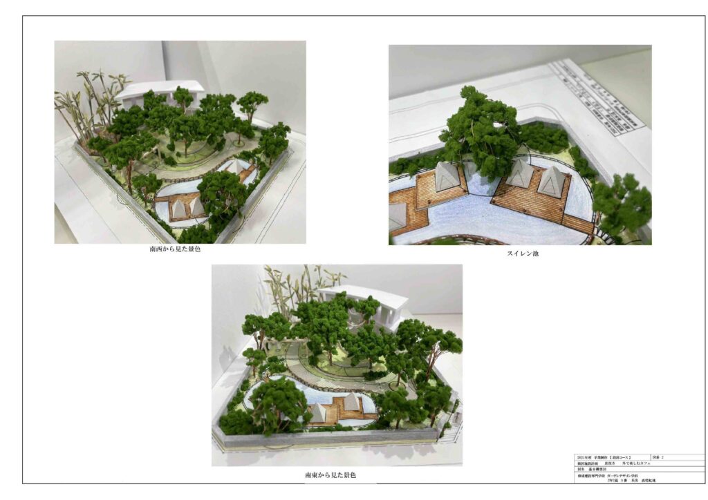 模型は細かい作業も多く大変でしたが、植栽や人、家具などを作り込んでいくことで、彩り豊かであたたかみのある作品に仕上がったと思います。
