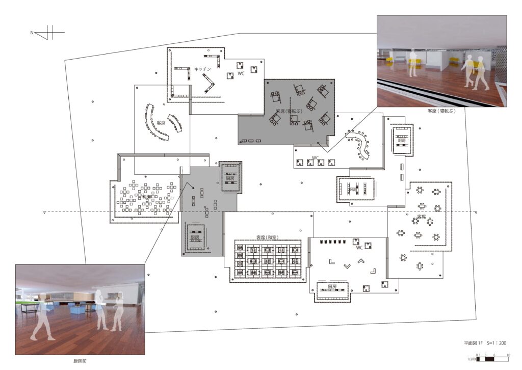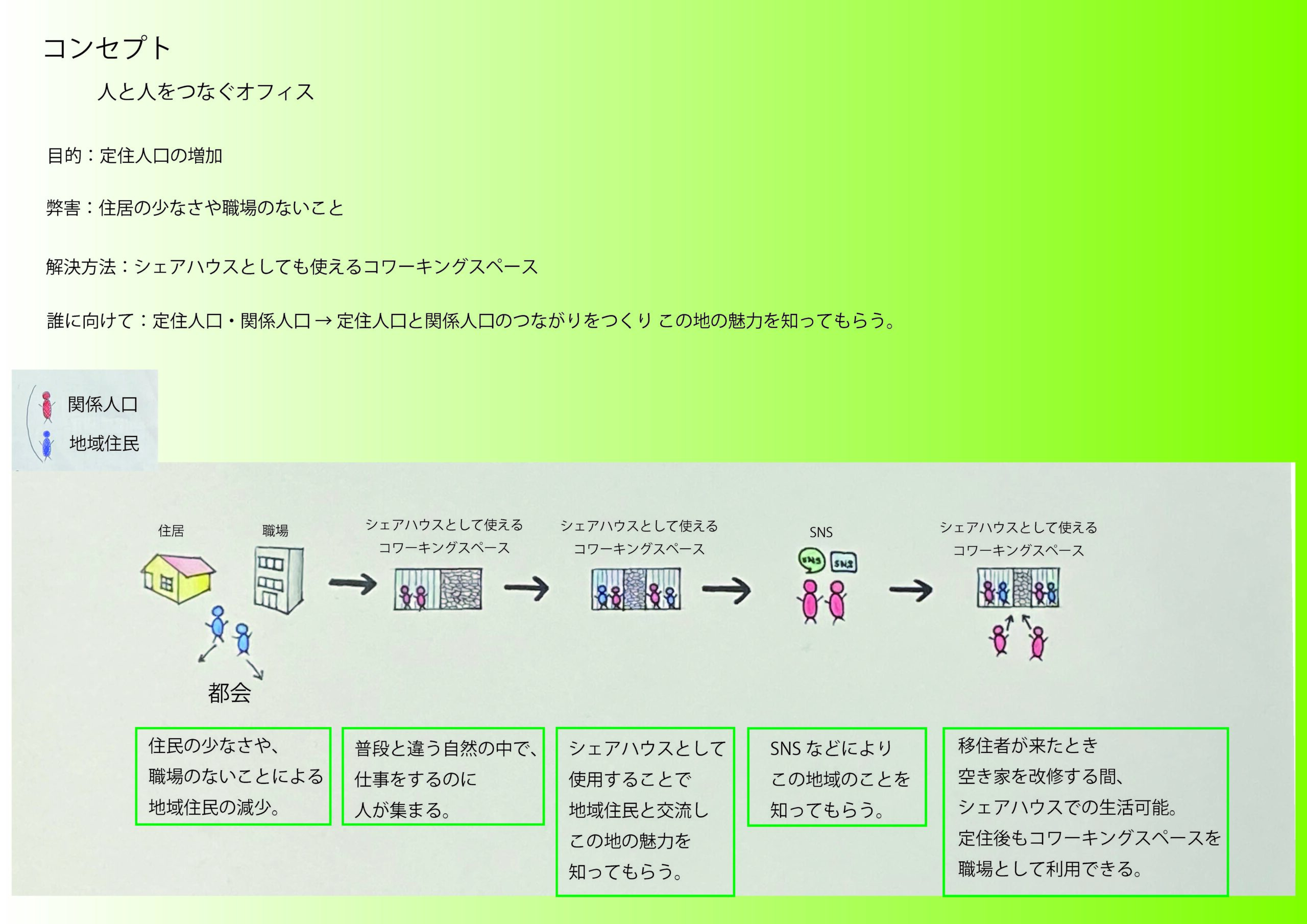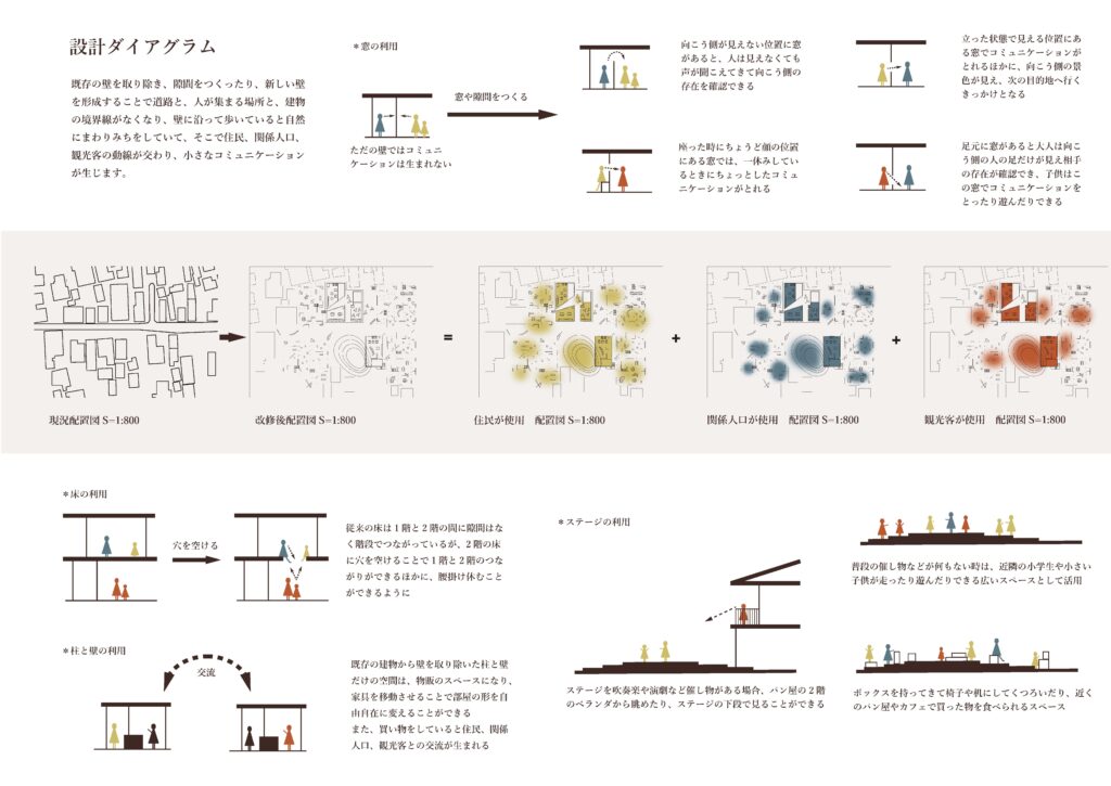 住民と観光客、長期滞在する関係人口の3つの人種のコミュニケーションを自然と取れるような計画をしました。
