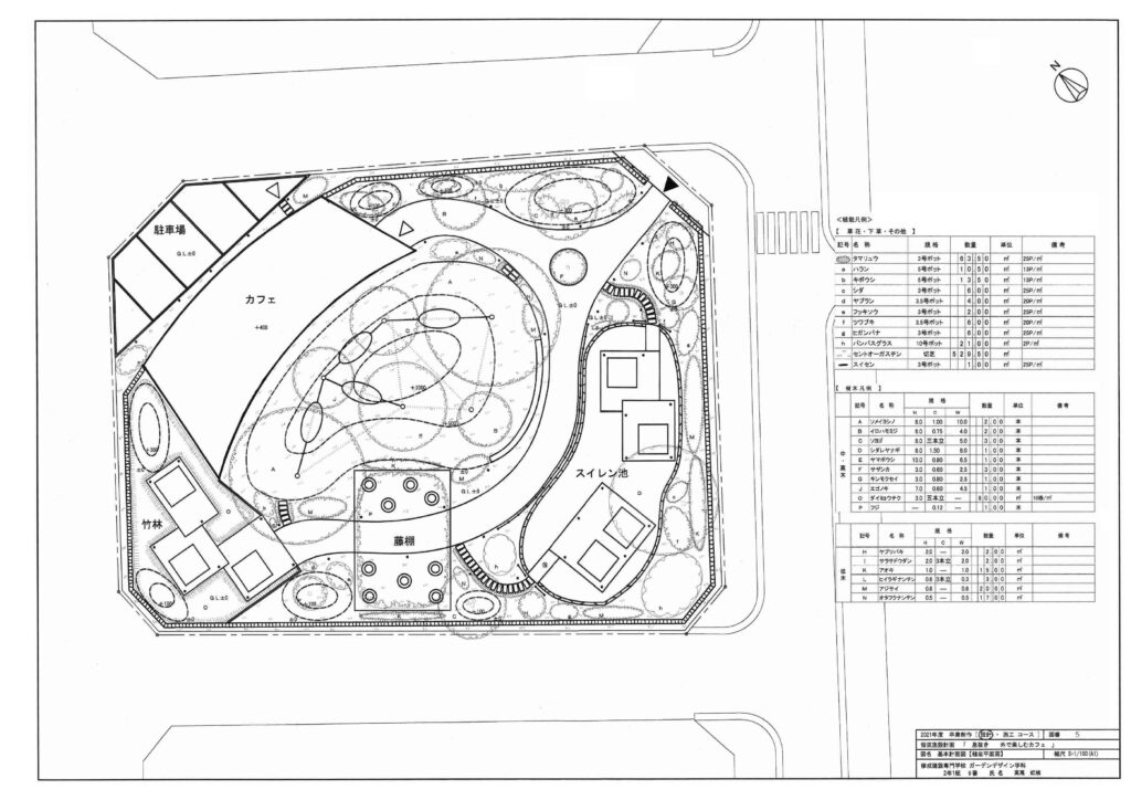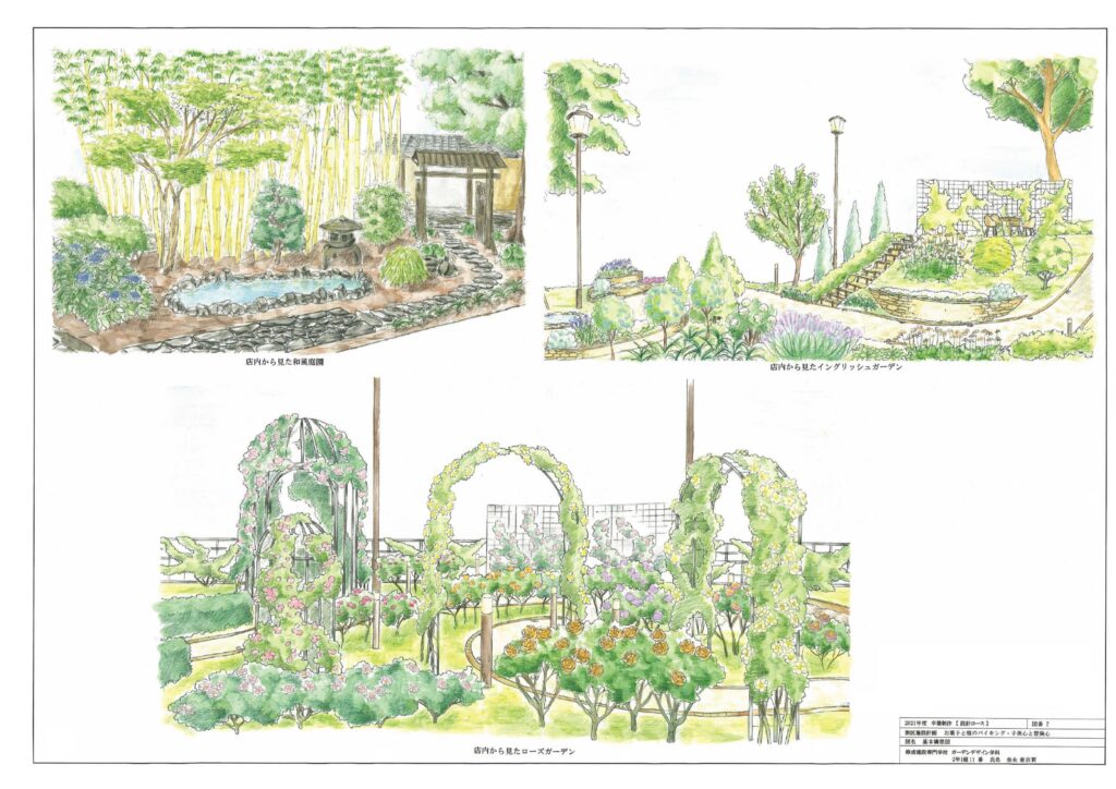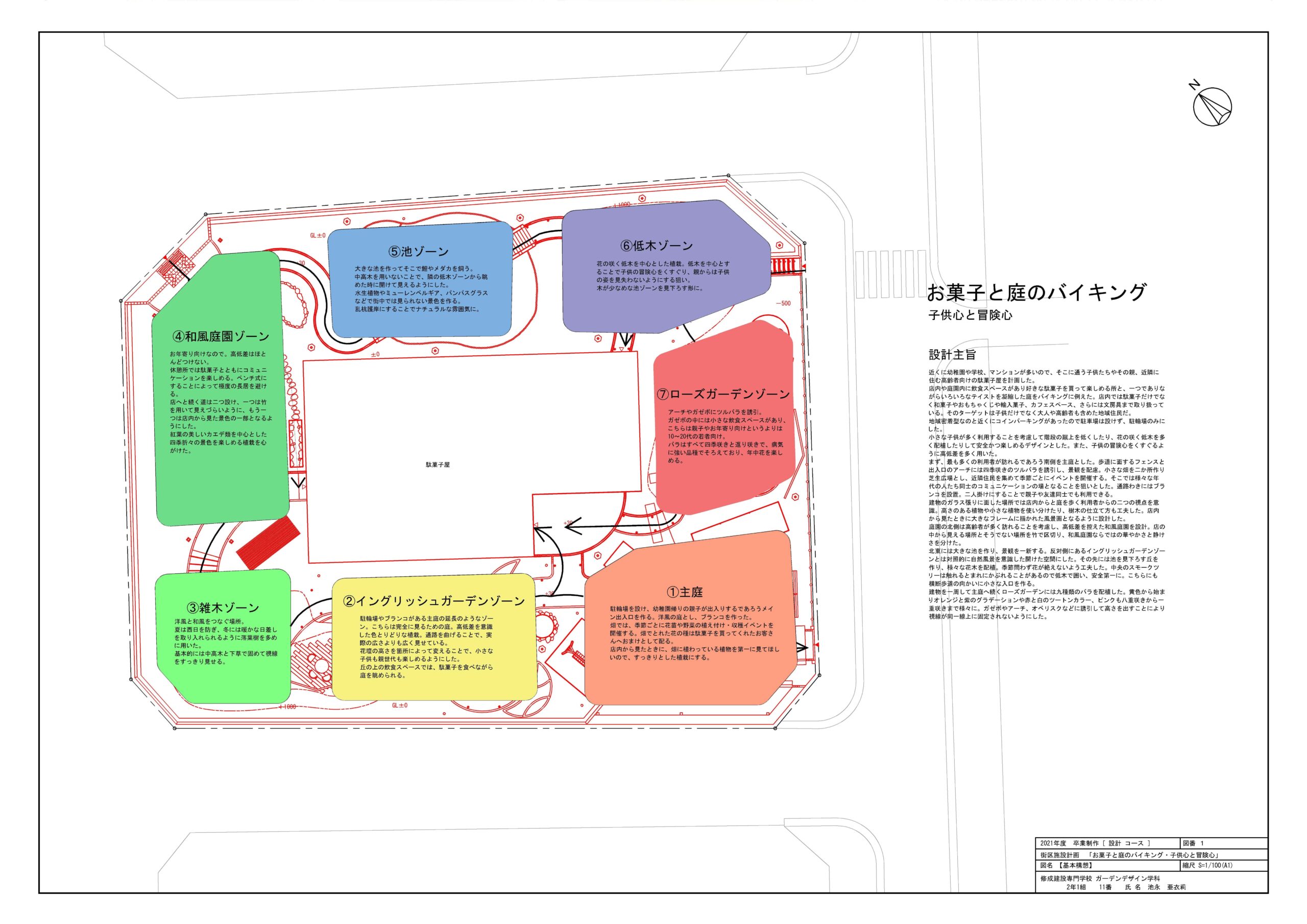 この作品は、設計者が修成で2年間に学び得た造園に関わる全ての知識や技術を存分に発揮し、欲張りつくして完成させたものであると言える。様々なテーマを持った異なるスタイルの庭園を一つ一つ造り込み、それらをあらゆる手法で違和感なく繋ぐ工夫が絶妙で、プレゼンでは聞く者がその空間に誘い込まれるような感覚にさえなる程、徹底したテーマ性のある空間づくりと表現力が冴えた。「悔いのない卒業制作」に全てが現れている。 <明石 祥子>