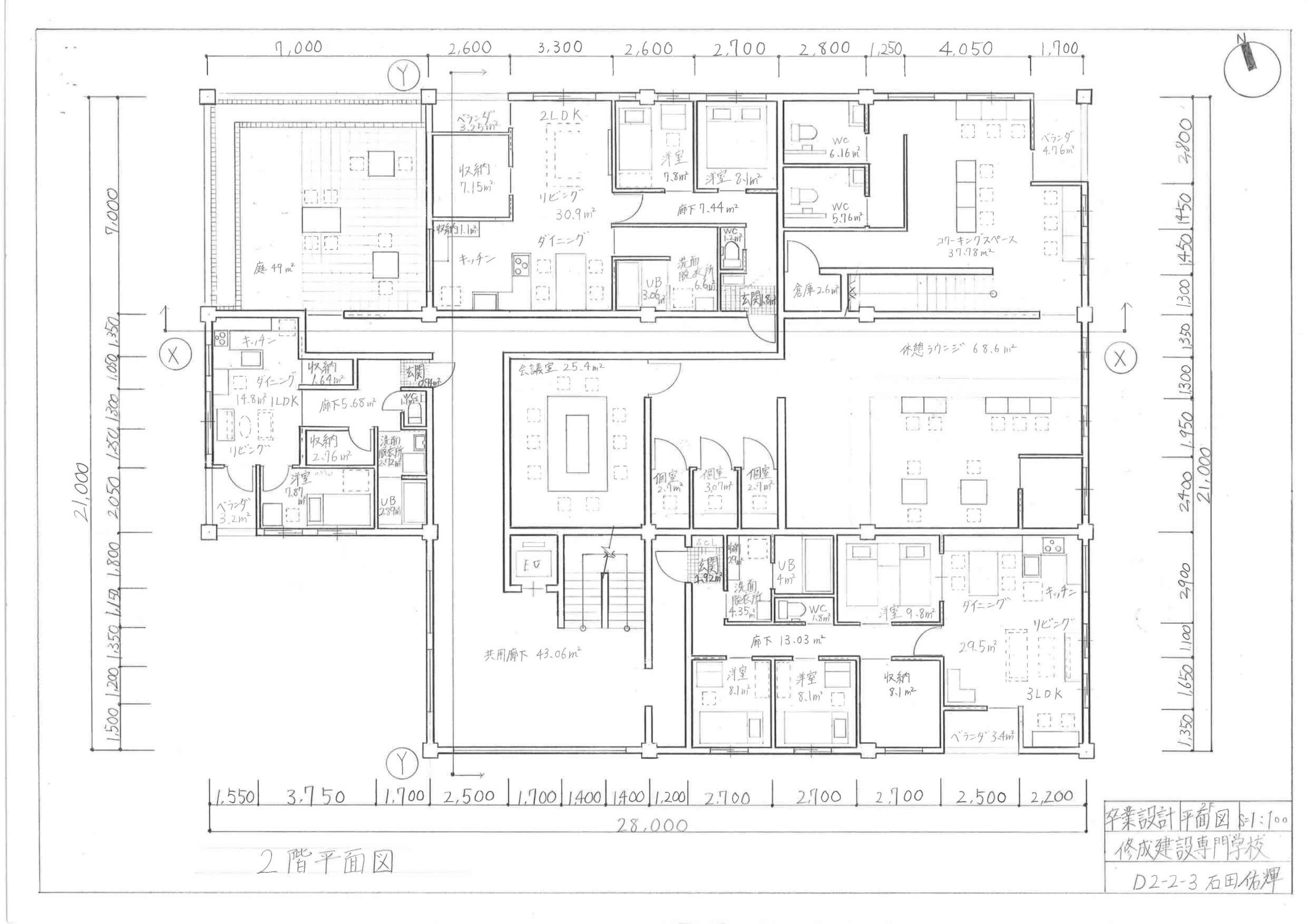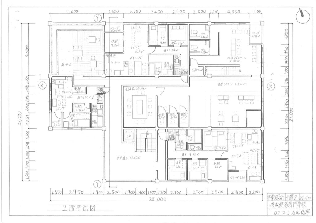 自由な設計ができる最後の機会だと思い、自分の好きなものを詰め込んだ結果、とても複雑な図面になってしまいましたが、悔いのない卒業制作が出来たと思います。