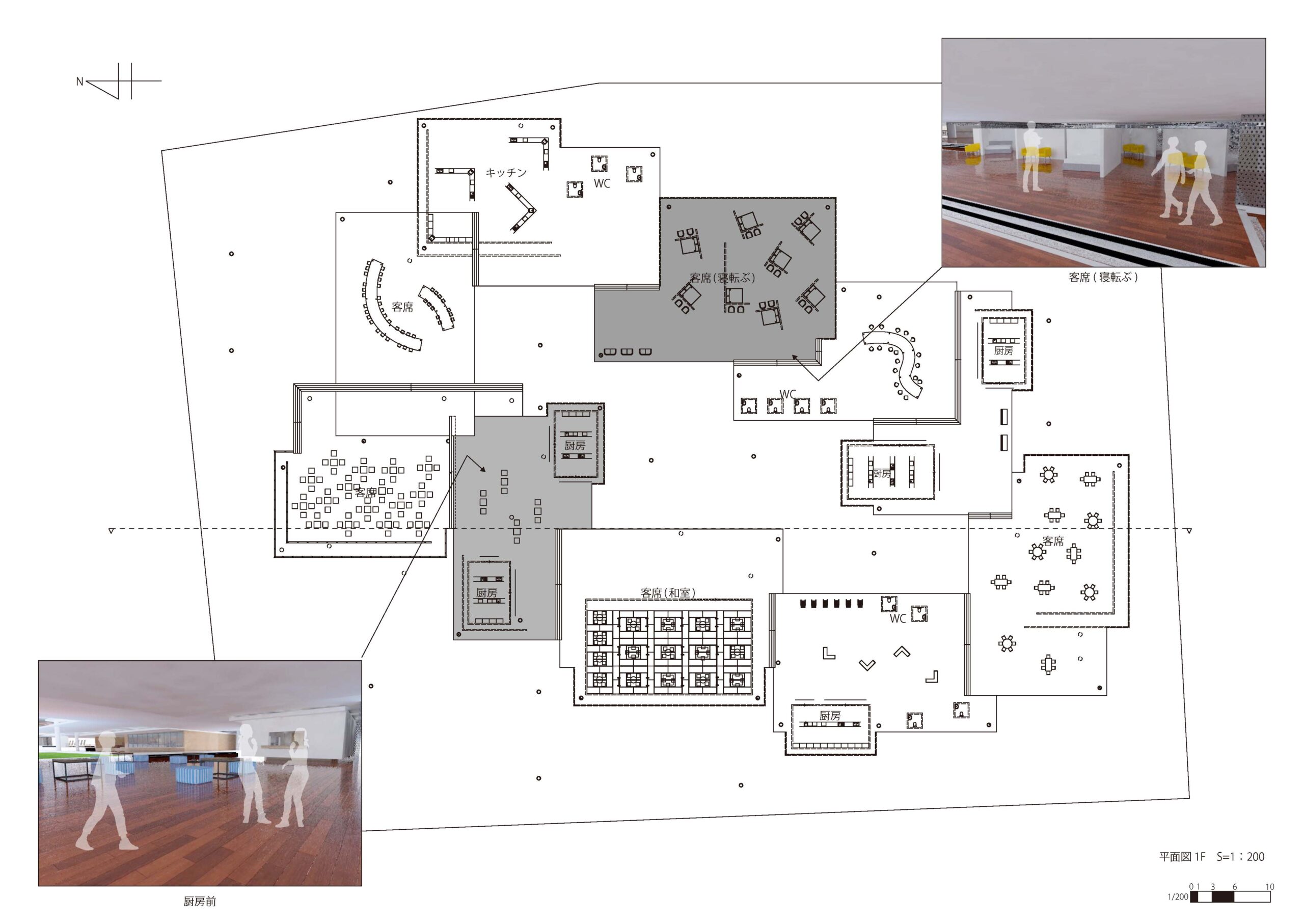 興味を持ったことをまずは現地に行き人に会って徹底的にリサーチする。測る、聞く、読む、調べる。設計の初期では当たり前のことだけれど、この「当たり前」がなかなかどうして難しい。情報をインプットしつつ感覚を頼りに整理しなければ良いリサーチにはならない。終わりの見えない行程にもどかしい思いをしたことだろうが、今年のディプロマ鍵谷ゼミで担当した両名ともにリサーチの質量では他の誰にも負けていない。そしてこの「当たり前」をしっかりと行ったこと、行なえたこと。これが彼女たちの最大の強みだと感じている。良い卒業設計だと思います。 <鍵谷 啓太>