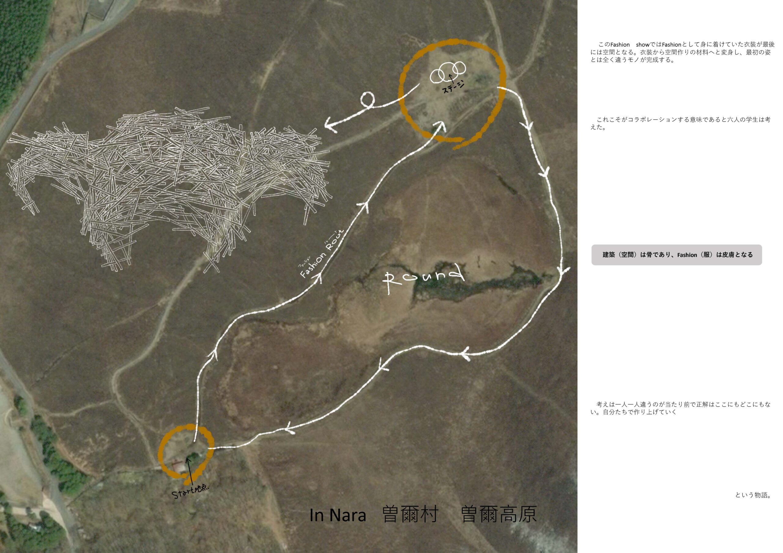 私は今回の空間提案で、Fashionと空間を融合させることを目的としました。なぜこの二つを融合させるのかというと普段私たちは必ず衣服をまとっています、衣服は空間が最も縮小して体にフィットした状態、そして衣服そのものが空間であるとも言えます。この二つを合わせることで新しい感覚が生まれると考えました。様々な感覚がありそれは無限大、忘れていた感覚を感じてください。
