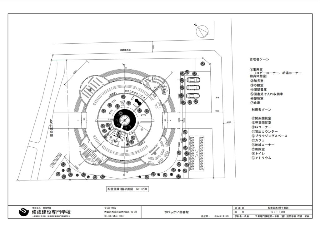 この作品を作ろうと思ったきっかけは、受験生の私の従姉妹が、「夏休みに図書館で勉強しようとすると、朝から多くの人で席が埋まっていて利用できず、その周辺にも勉強できるような飲食店もないので、結局家で勉強している」という話を聞いたことでした。計画地周辺には学校が多く、従姉妹のように勉強する場所がなく困っている学生が多いのではないかと考え計画しました。