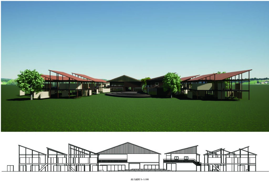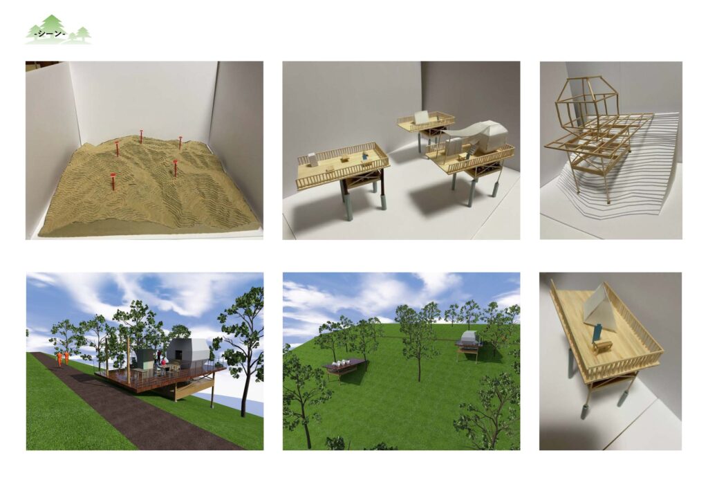 この作品も限界集落とコロナ禍における社会的問題を学生の目線から提案した作品です。都会から離れ、コワーキングを通じて癒す風景を眺めながら、デザインが村の魅力を引き出し、村と村を現代の要求を踏まえて、「つなぐ」手立てとなれば幸いです。 <青砥 聖逸>