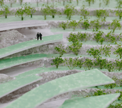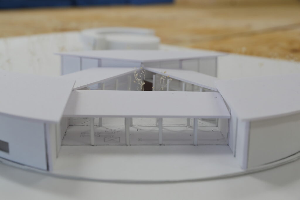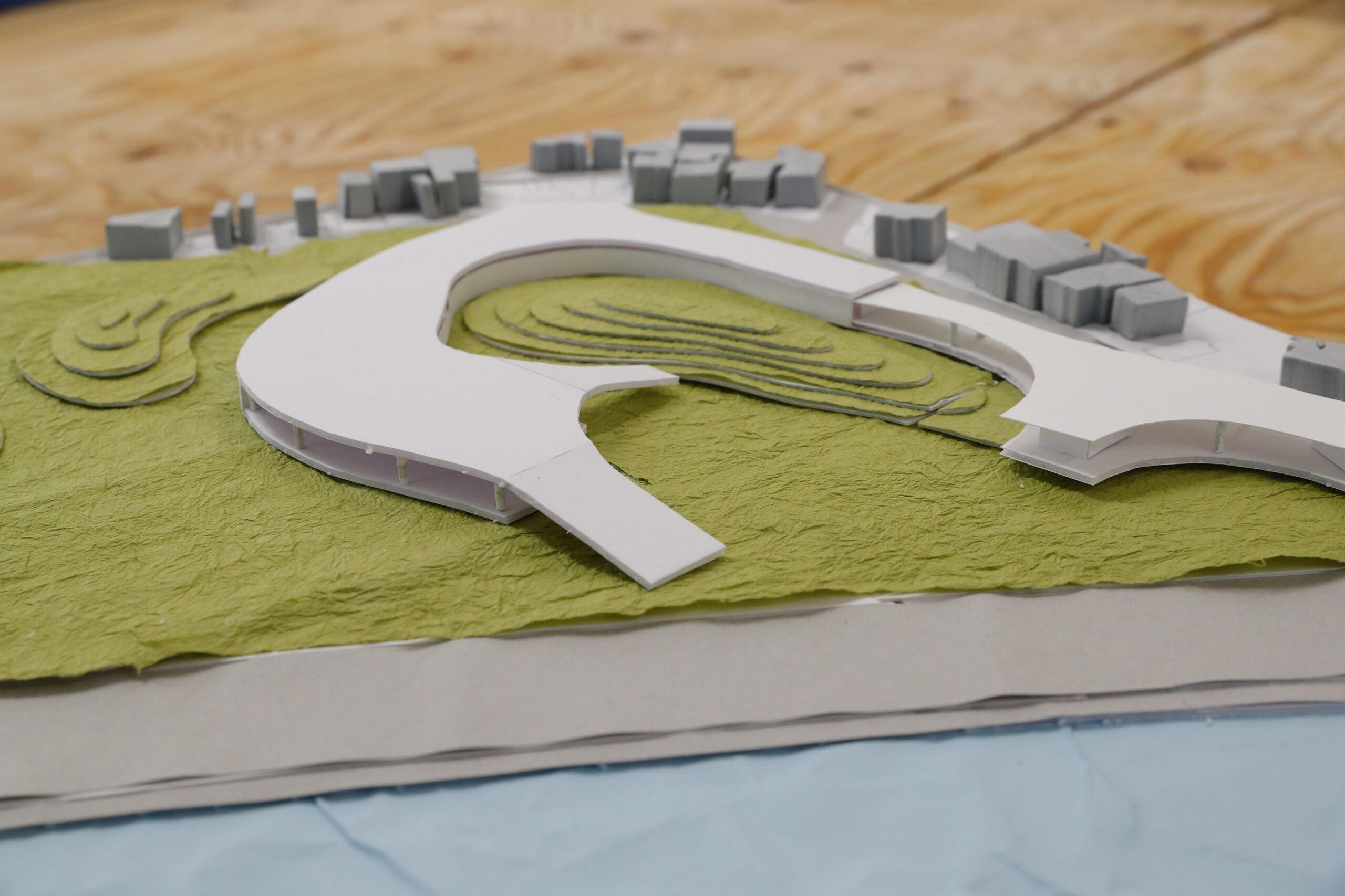 自然とは何か?都会で育った彼は考えました。自然の大きさを感じ「謙虚」を伝える建築がテーマでした。建築のできることの枠を超えているかもしれない内容でしたが、なんとか道筋を見つけていきました。