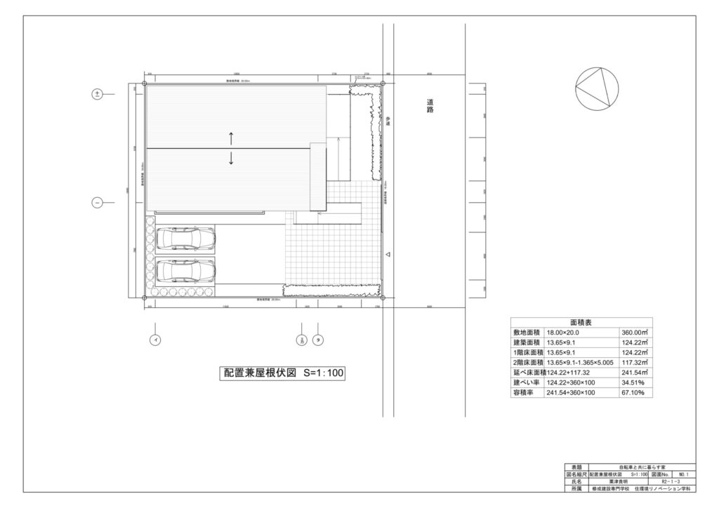 彼の作品は、当初は何も決まっていないようで自分自身が何を建てたらいいのか?どんな家がいいのか?から始まりました。それから色々と考えながら敷地の決定から必要なことを実行し、瞬く間に建物を計画し図面作成と問題なく進捗していき最終的に当初心配していた事を忘れるような勢いで完成させました。図面を始め最後まで気を抜くことなく、予想以上に彼の心にある気持ちが表れた作品だと思います。<山本 順也>