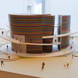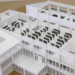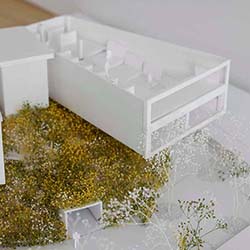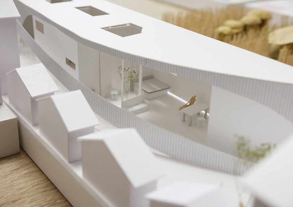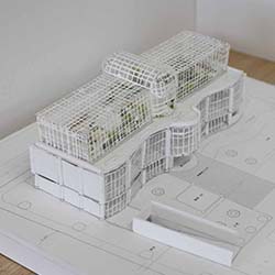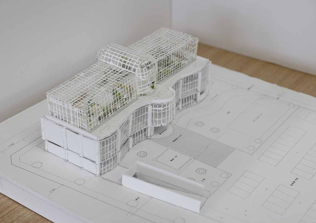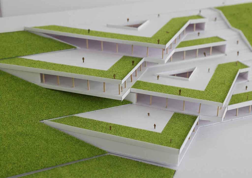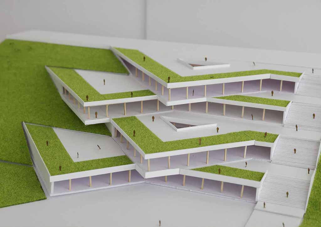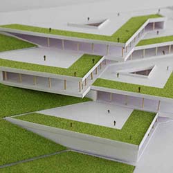 この作品はそうした原動力と成り得るのではないか。地形に乏しい計画地に丘をつくり、施設を潜り込ませ、尚且つ浮き上がるようなフォルムの構成は「建築力」として計画当初から高く評価しており、図面表現に留めるのではなく、ダイナミックな模型製作まで指導した。 <青砥 聖逸>
