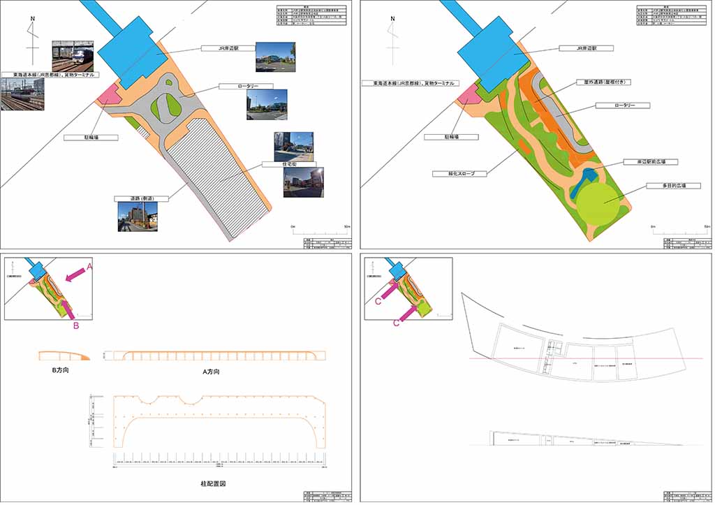 私の卒業設計の課題は大阪府吹田市にある、JR岸辺駅に着目し駅前広場の開発を題材としました。私は幼少の頃から「鉄道」が好きで、今回は「建築」と「鉄道」を融合した作品を制作しました。