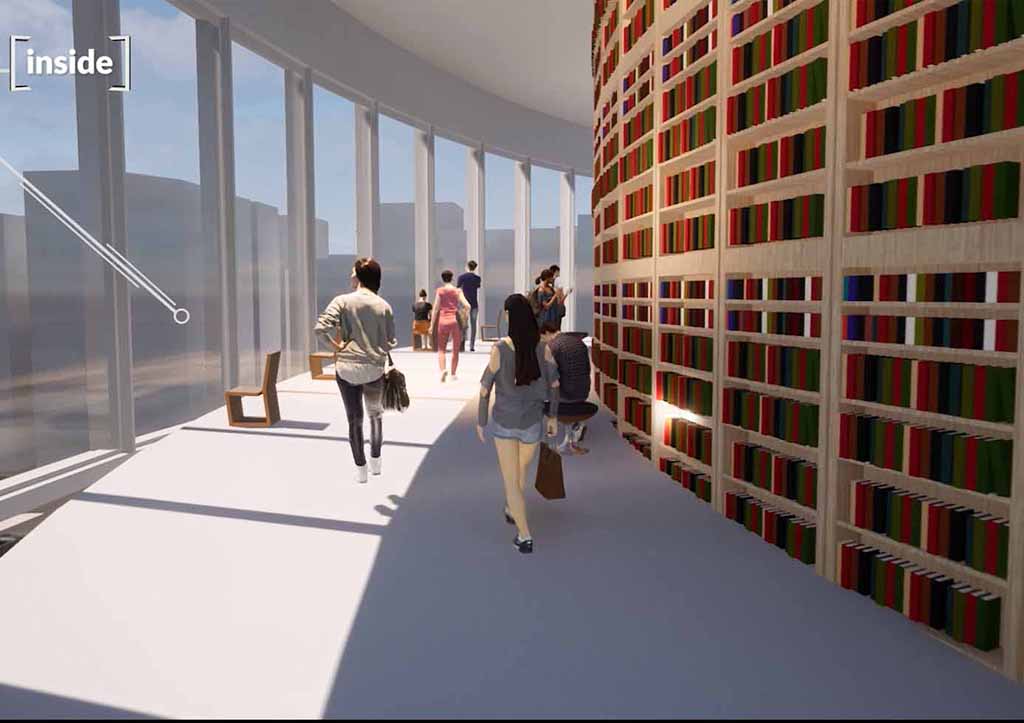 繊細かつ大胆な発想でいつもドラスティックな空間を提案してくれる彼女らしい作品。均等なスパン割による丁寧な平面計画でありながらガラス張りのファサードは美術館のような華やかさを持っています。図書館としてはご法度ともいえる外部との関りを積極的に生み出していて、図書館の新たな可能性を提示しています。また想像を形(絵)として表現する能力も素晴らしく、卒業後の活動も大変楽しみです。 <阪本 剛史>