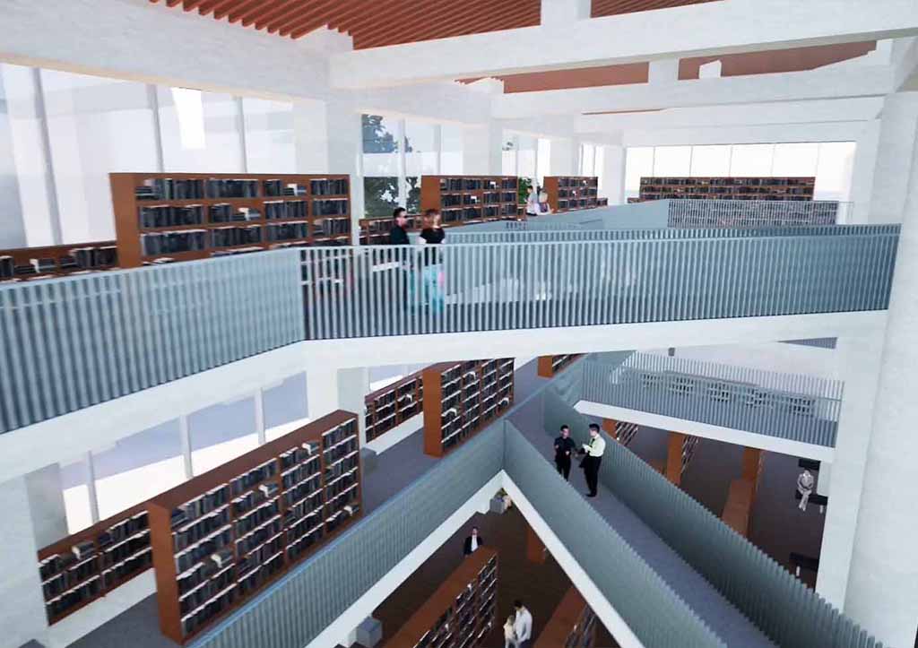 内部の機能的な配置も、外部の景観と連動し、利便性と心地よい雰囲気を共に実現しました。建物全体がまるで自然と共に息づいているかのような調和が感じられ、利用者に静けさと創造性の共存を感じさせる図書館となりました。
