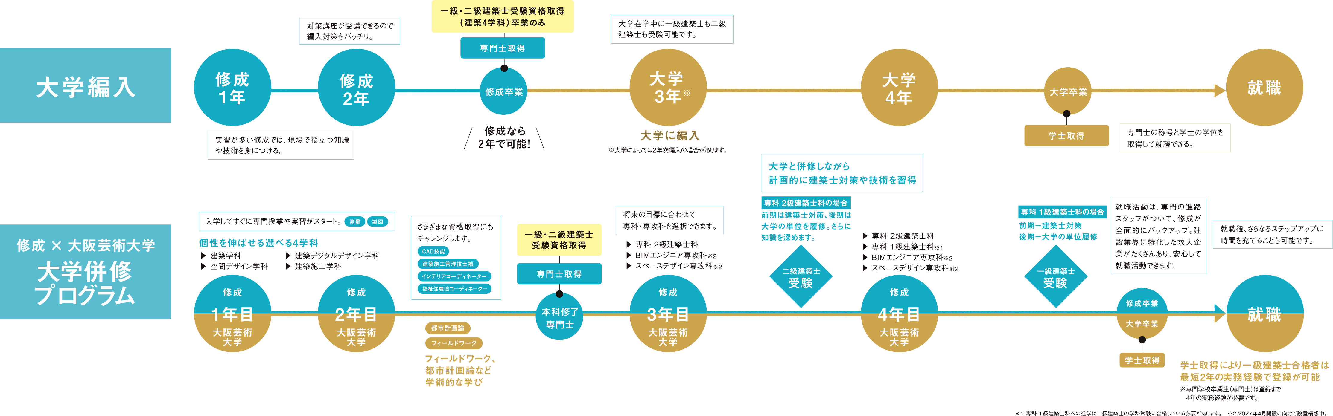 ※1 専科 1級建築士科への進学は二級建築士学科試験合格以上が条件