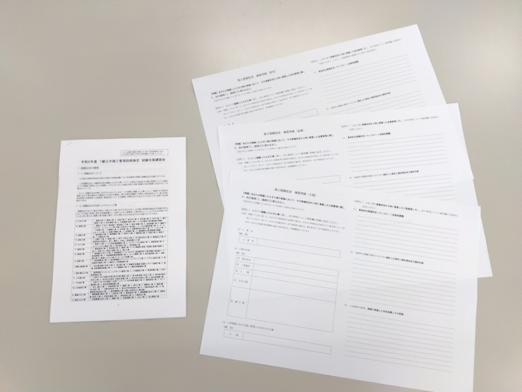 つい先日、9/22(日)・23(月)の二日間で1級土木の添削を実施しました。
