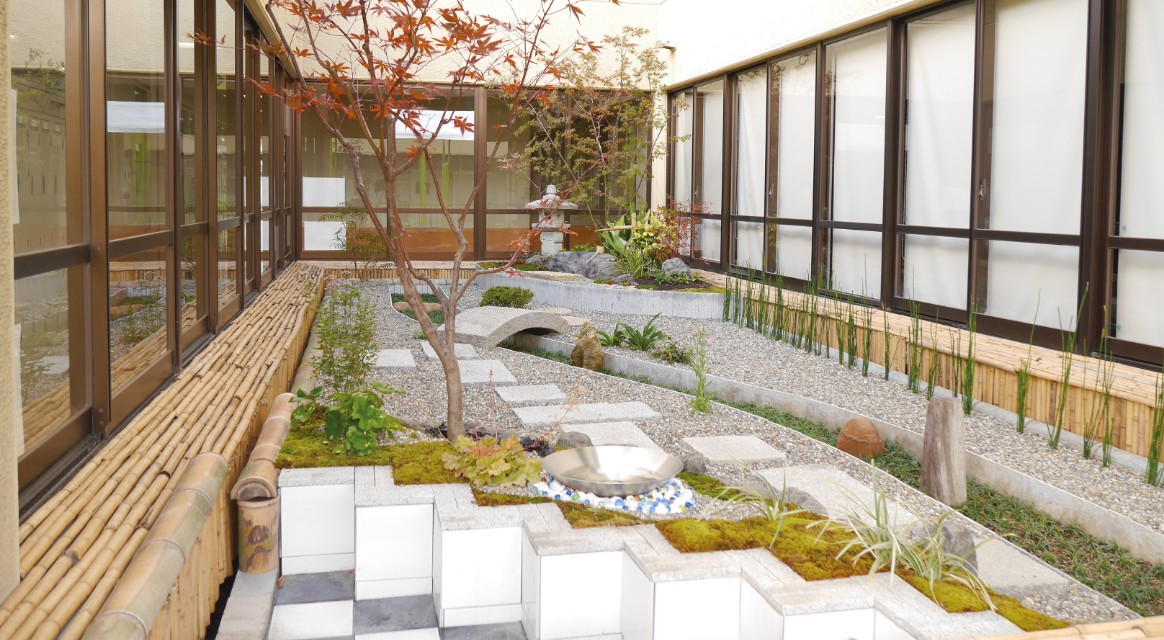 学内コンペを実施し、最優秀作品を施工した日本庭園。