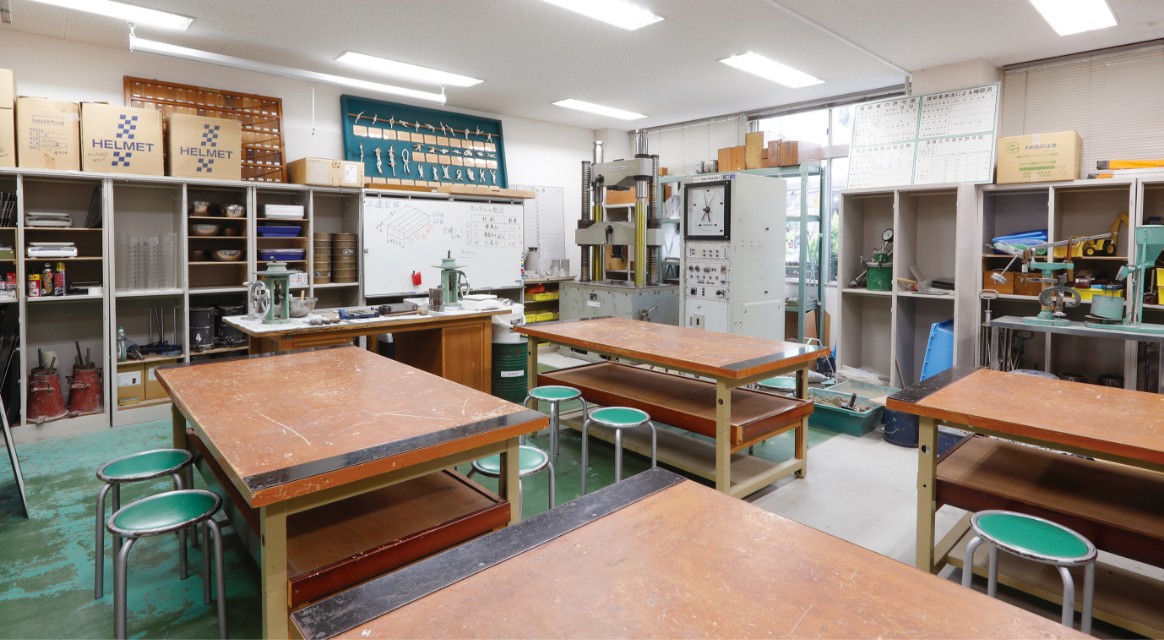 コンクリート実験などで使用。プレス機などさまざまな機械が配置されている。