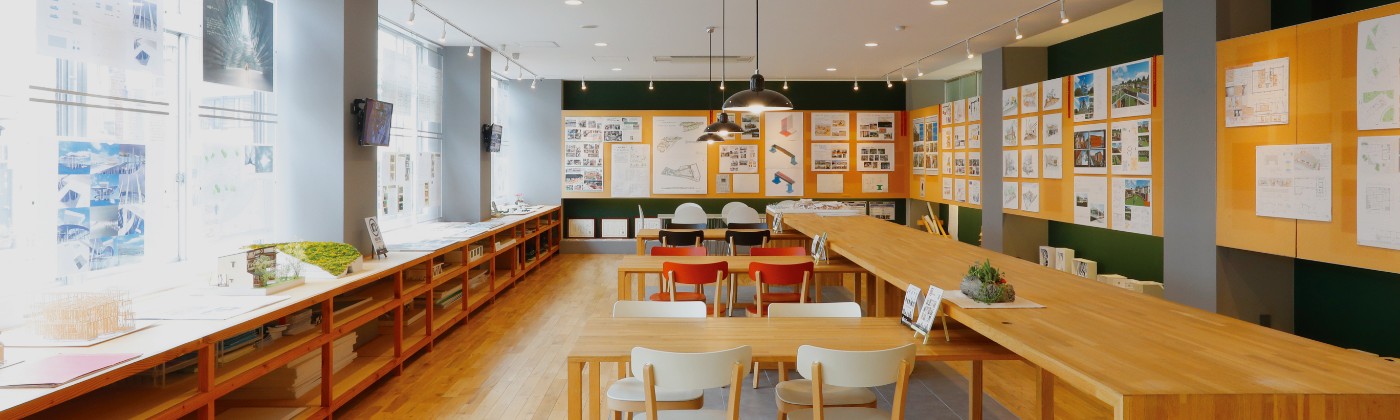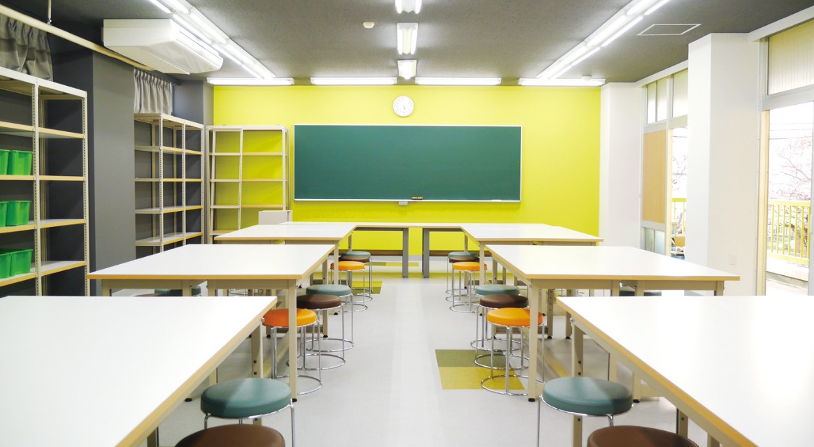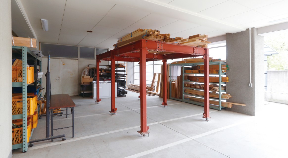 空間デザイン学科がメインで使用している教室。作品制作に必要な道具などがある。