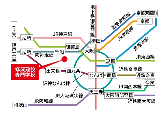 修成建設専門学校までの歩き方