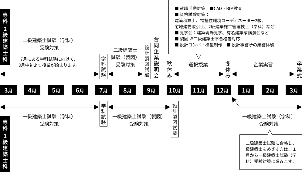 専科 1級建築士科(空間デザイン学科・専科 2級建築士科から就職・再進学)