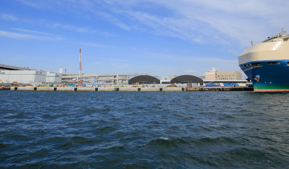 大黒ふ頭の客船ターミナルは、2017年から改良工事がはじまり、自動車専用船岸壁を利用して築造された。