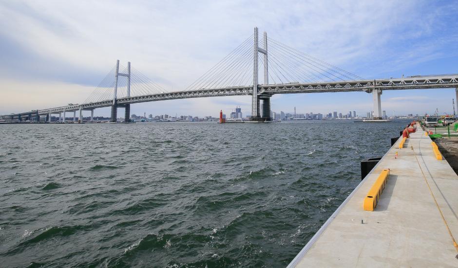 現在、横浜港のメインターミナルである大さん橋ふ頭の長さは450m。そのため、全長300m超えの大型客船であっても、長さの面だけで見れば港に着けること自体は可能ですが、大きな船はその分高さもあります。横浜ベイブリッジの橋桁、つまり海面から橋の下辺部分まで55mでは高さが足りず、橋の下を通過できません。現存する船だけでも、ベイブリッジをくぐれない大型客船が多数あるのが課題となっています。