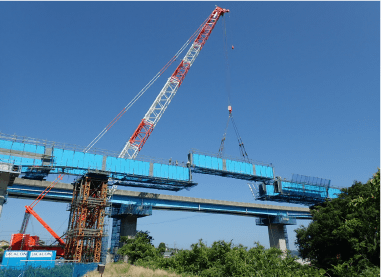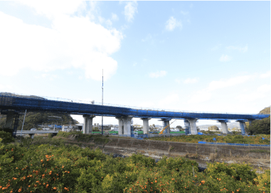 「湯浅御坊道路」は和歌山県御坊市から和歌山県有田郡有田町までを結ぶ約19km。その4車線化に伴い、日本ファブテック(株)では広川IC〜広川南ICまでの約4kmの区間で7つの橋梁上部工事を順次行っており、2020年8〜9月頃には大半の工事が完了する見込み。道路自体の開通は2021年12月に予定されている。渋滞の緩和や安全性の向上、