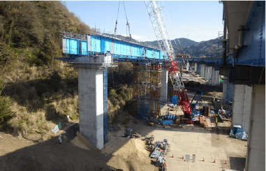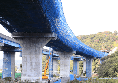 橋梁(きょうりょう)工事。川田工業株式会社/新名神高速道路 八幡ジャンクションBランプ1号橋他4橋(鋼上部工)工事
