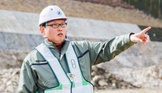 入社以来20年にわたり、各地で災害復旧や高速道路工事に従事。今回の工事には施工管理として携わっている。現場での工夫や、土木業界の魅力について語っていただいた。