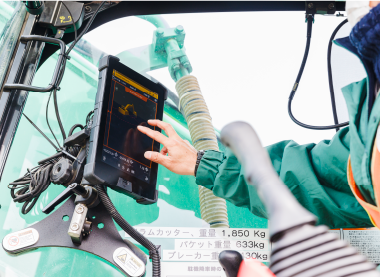 中野:この現場ではICT施工も取り入れています。これまで土木工事は測量を行ってからでなければ作業ができませんでしたが、バックホーやブルドーザーにGPSをつけることで、この重機が地球上のどこにあるかが正確にわかるようになり、測量をしながら作業ができるようになりました。平面や3Dで表現された完成形の図面を重機に搭載しているため、土を掘る箇所や深さもミリ単位で把握し、オペレーターが複雑な操作をすることなく、前進とバックだけで図面通りの施工ができます。環境によって電波状況が悪くなるなどの課題はあるものの、人が測量していた時間を省き、経験の浅い技術者でも熟練工並みの施工ができるのが大きなメリットです。