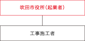 吹田市役所は「起業者」の立場。工事の予定価格を決めて入札を実施し、条件に合致する会社が応札・受注するという流れ。実際の施工を行うのは受注した工事施工者で、吹田市役所は工事施工者と密にコミュニケーションを取りながら、警察や道路管理者、沿道の住民など多数の関係者との協議や必要な申請を行うほか、工事の進捗など全体を把握してプロジェクトを進めていく。