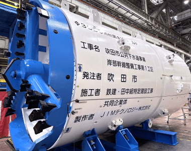 工事の内容としては、大阪府が整備している都市計画道路十三高槻線(正雀工区)の地下10mに、現場の地盤に合わせて特注で製作したシールドマシンを使って直径2.8m・全長580mのトンネルをつくっていくというもの。東京都や大阪市などの大都市を除けば、直径2.8mの下水道管は比較的大きな規模です。今回使用しているのは泥土圧式シールドマシンで、先端にあるチャンバーという箇所が切り崩した泥土で常に密閉されています。チャンバー内に泥土で圧力をかけ、掘っている箇所で土が崩れてこようとする圧力と均衡させることで掘り進む仕組みで、掘った後はセグメントという材料を組み立てて壁面を固定していきます。掘り進められる距離は、24時間施工で1日に平均10m程度。13個の推進ジャッキで掘り進めています。計画の580mを掘り進めた後は大阪府の流域下水道に接続するほか、沿道の敷地内から汚水や雨水を引き込むための浅い下水道管も整備し、今回掘っている下水道管に接続する工事も合わせて行います。