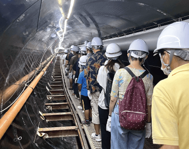 2023年9月に今回の現場で実施し、約300名という当初の想定を大幅に超える約1000人の市民が参加。トンネル内のツアーや子ども向けのバックホウ乗車撮影会などを実施し、土木や下水道の役割を多くの人に伝えられる機会となった。