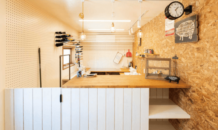 - オーナーが服飾系の制作、リメイク、補修を自宅の一室で行っていたが手狭になってきたことから増設を考え、当社で海上コンテナをアトリエとして設計施工。作業する上で糸の使いやすさと収納を重視し壁を利用して見せる収納を有孔ボードで実現。