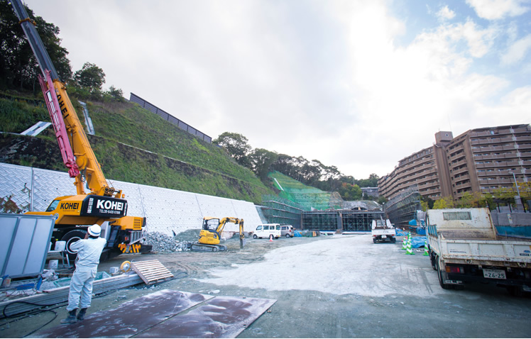 兵庫県西宮市を拠点に土木・建築工事を行っている会社の土木部門で工事部の部長をしており、現在は監理技術者として西宮市のバイパス設置工事現場に携わっています。この道路は地元の方々が安全性を高めてほしいと約20年にもわたって要望されてきたもので、開通すれば安全性の向上はもちろん交通混雑の解消も期待されている現場です。これまで道路、河川、上下水道などさまざまな土木工事に関わってきました。中でも印象に残っているのは、兵庫県を流れる武庫川で、農業用水分配のためのゲートをつけた工事です。工事期間中に阪神・淡路大震災が起き、電気が止まったことで現場内の水替えができず、組み立てた鉄筋、型枠が水没に。道路が復旧しなければ工事を始められないため、工期が1か月半も止まりました。再開後は、組んでいた部材を取りはずし、土砂をすべて洗い流して組み直し。資材も不足がちになったうえに、河川内工事は6月以降の雨期が始まるまでに工事を終わらせる必要があるため、急ピッチの作業で完成にこぎつけたときは安堵の気持ちでした。 現場でどれくらい工夫ができるかが腕の見せどころ。