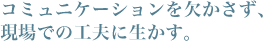 土木の奥深いところは、建築のように縦方向中心に作業をするのではなくて、横方向への作業を進めていくところだと思います。大きな現場は事前のボーリング調査などで地中の状態を把握していますが、実際に掘ってみて水が湧くところもあります。震災も含め、とにかく自然に左右される仕事で、そこが厳しさでもありますし、工夫のしがいがあるところでもあります。また、工事区間が数十メートル進めば住民の方も変わるので、コミュニケーションは特に大切にしています。どのような工事をしているのか興味をもっていただき、歩ける状態まで工事が進めば一足先に見学会などで通ってもらいます。たとえば地下に集中豪雨対策の貯留槽をつくったときには、修成の学生や近隣の小学生、先生などを招待し、地下に潜って貯留槽内を歩いてもらいました。「一生に一度あるかどうか」と喜ばれ、日本の土木技術の高さを感じていただけたと思います。最近では行政も近隣の住民の方々へのアピールに力を入れていますので、多くの人に土木への興味をもっていただける機会をつくれるように工夫したいですね。こうして、つくったものが残り、社会の役に立てることが土木のやりがいだと思います。一つひとつのことをよく考えて作業したかどうかで自分がつくったんだという実感が強くなり、土木の醍醐味をより感じられると思います。特に今は、自分でつくったものがgoogle earthで見られるのがいいですね(笑)。 自分で考えて創意工夫を重ねれば、完成の達成感も大きい。