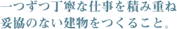 これまで、近隣住民の方々の建設反対にあった物件もありました。そういうときは住民の皆さんに説明会を開いて少しずつ理解を得るようにし、役所との調整も行います。お客さまと直接やり取りするというのは、そういった関連するすべてを含めてのことです。その物件も説明と調整を重ね、結局はきちんと竣工できました。建築物って、いろんな人のちょっとした努力が重なって建つんですよね。毎回いろいろあって、「もうやめてやる!」と思うこともしょっちゅうありますが、引き渡しのときにはスッキリ忘れてうれしくなってしまうんですよ(笑)。不思議と「なんかいろいろあったけど、よかったな」と思えてしまうんです。その喜びがあるから、この仕事を続けていけるのかもしれないですね。仕事をするうえで常に心がけているのは、竣工した後に寄りたくならないような建物にはしないということです。つくったものが残るというやりがいや喜びがあるということは、逆に妥協して適当な仕事をすれば、適当なものがそこに一生残ってしまうということでもあります。そうならないためにも、目の前のことに一つずつ丁寧に取り組んでいくしかありません。 竣工のときに毎回思うこと。「いろいろあったけど、よかった」。