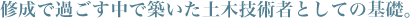 高校生の頃、テレビ番組で建築士が家を設計している様子を見て、かっこいい職業だなと憧れるようになりました。けれど、周りの人にそのことを伝えると、プロになるには絵を描く能力が必要なことが発覚! 昔から絵が大の苦手だった私の夢はそこでついえました(笑)。次の就職候補として考えたのが土木業界です。その理由は、建築業同様、ものづくりに携われるから。また、父親が役所の土木科に勤めていたのも心強かったです。修成では土木の世界でバリバリ働いている外部講師から直接指導を受けることができました。特に現場での体験談を交えながら、「この作業は注意が必要」「この計算式はちゃんと勉強した方がいい」「プロの世界ではこういう資格が役立つ」とピンポイントでアドバイスをいただけたのは勉強になりました。授業の内容も実践に即したものばかり。その中でも私が好きだったのは力学とCADです。学校で習うこととプロとして求められるもの、そこには当然、大きなレベルの差があるのですが根底は同じ。学生時代に得た知識や技術は今の自分の土台となっています。修成に通っていた頃の同級生とは今でも仲良しです。土木の現場で活躍している友達が多いので、食事に行った際には仕事の話で盛り上がっていますよ。 美しい橋が生まれるその瞬間に立ち会えるのは感動ものです。