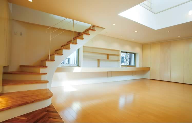 - 築80年の長屋を全面耐震補強。階段に下足収納をつけるなど機能性も向上。