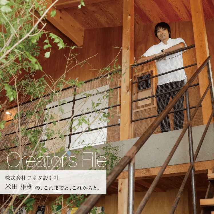 職を転々としながらプロキックボクサーをめざしていた20代前半。しかし年齢的な限界を感じ、一生向き合っていける仕事を模索して見つけたのが建築の道です。26歳で、昼は修成から紹介してもらった設計事務所でアルバイト、夜は修成の夜間部で学ぶ生活を始め、修成では熱意ある先生方に指導していただきました。卒業後は工務店での勤務を経て、2013年に地元の三重県松阪市で独立。その後、「自宅」と「ヨネダ設計舎」の事務所を兼ね合わせた「4+1HOUSE」を建てました。アルバイト先だった設計事務所の所長に構造計算していただいた作品。中にアオダモを植えて自然とともに生活することにこだわった建物で、テレビ、新聞、書籍などさまざまなメディアに取り上げられ、建築コンテストで受賞したり、JIA環境建築賞で優秀賞をいただいたりと、たくさんの思い出をつくってくれています。