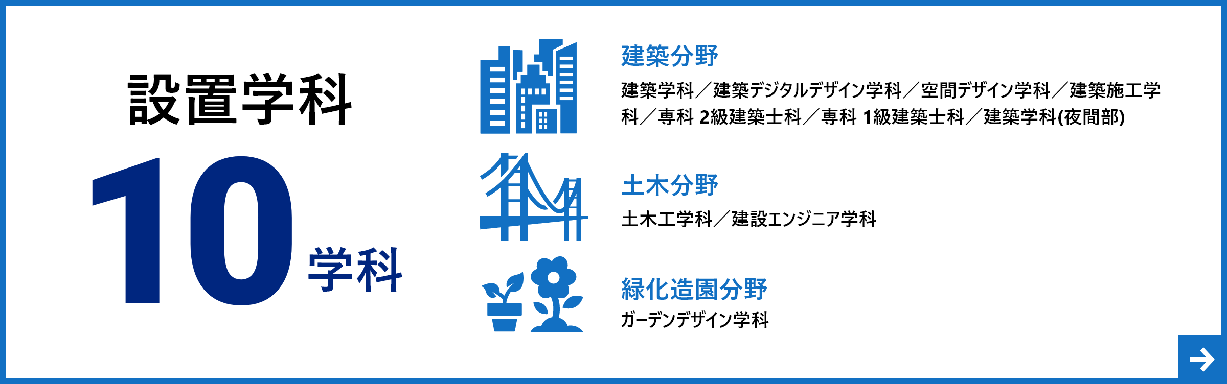 建築分野:建築学科/建築デジタルデザイン学科/空間デザイン学科/建築施工学科/専科