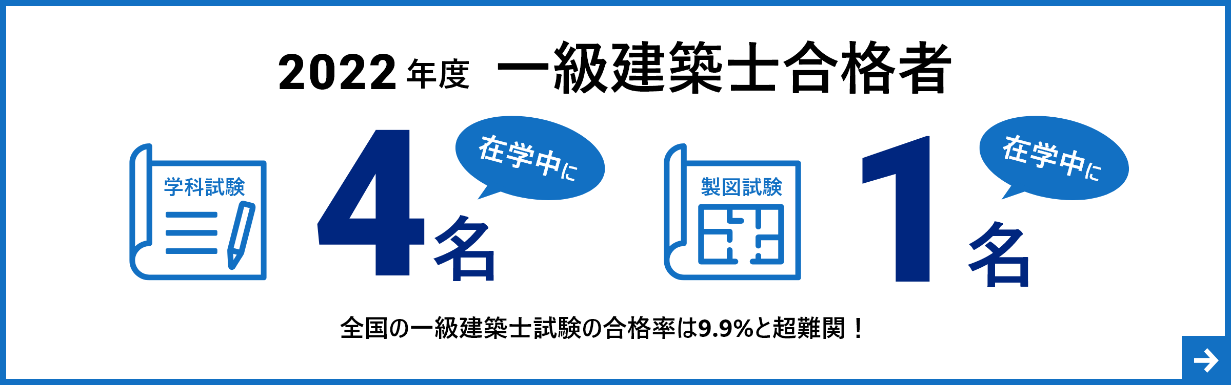 「一級建築士受験資格認定校」である修成では、2021年度より「専科1級建築士科」を設置。2024年度は学科試験17名、製図試験4名の合格者を輩出しました。効率的かつ綿密な学習により、一級建築士試験の合格を実現します。
