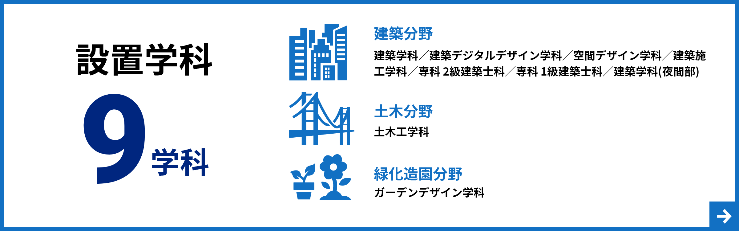 建築分野:建築学科/建築デジタルデザイン学科/空間デザイン学科/建築施工学科/専科