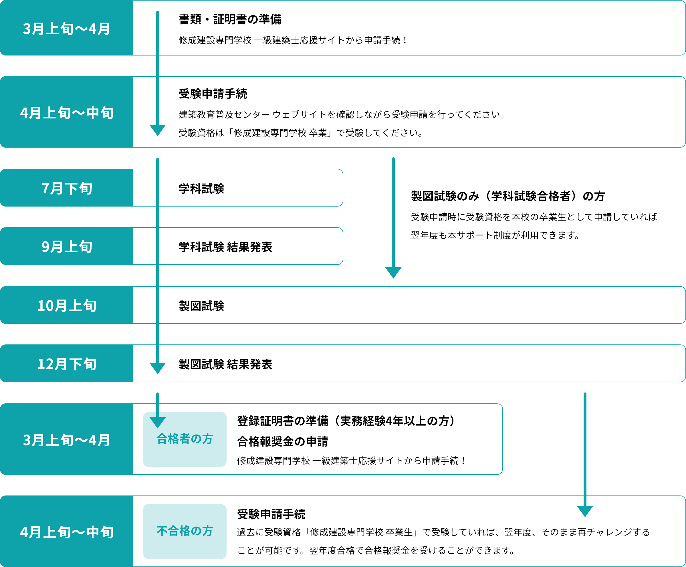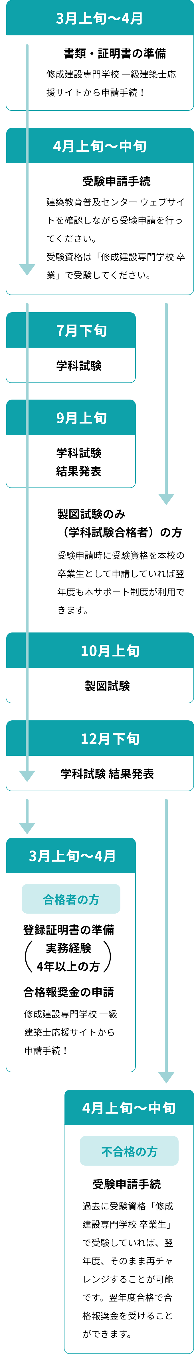 ただし、給付を受けることができるのは、受験資格「本校の卒業生」として一級建築士を受験した方のみです。