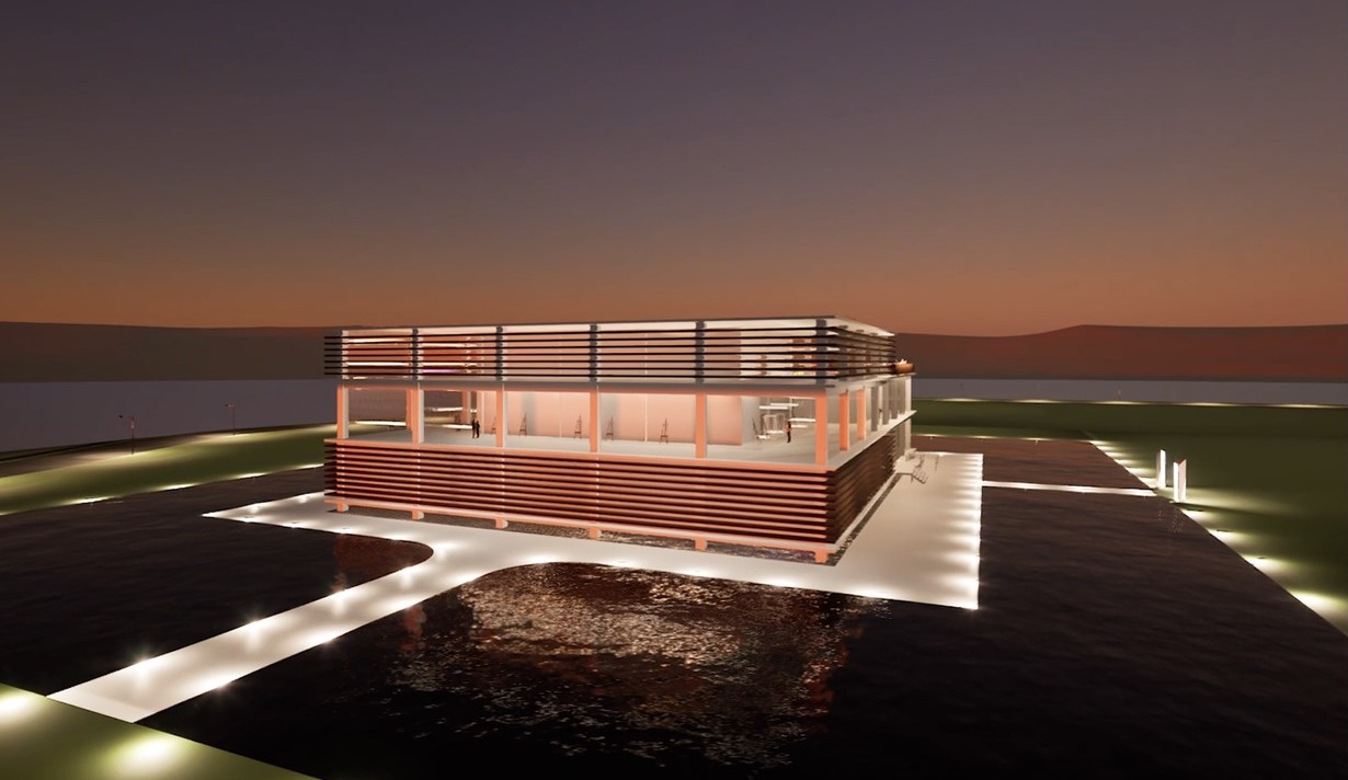 本設計は、海と星が織りなす静寂と安らぎを提供する大人限定の宿を提案したもの。喧騒を離れ、落ち着いた時間を過ごせるよう、プライベート性の高い客室と静寂を重視した空間を配置し、焚火と星空が織りなす幻想的な雰囲気を演出した。火を囲むことで生まれる自然な対話や、非日常のひととき、風を感じる設計。地元を知る彼女だからこそ幻想的で落ち着きある提案ができたのであろう。<辰井菜緒>